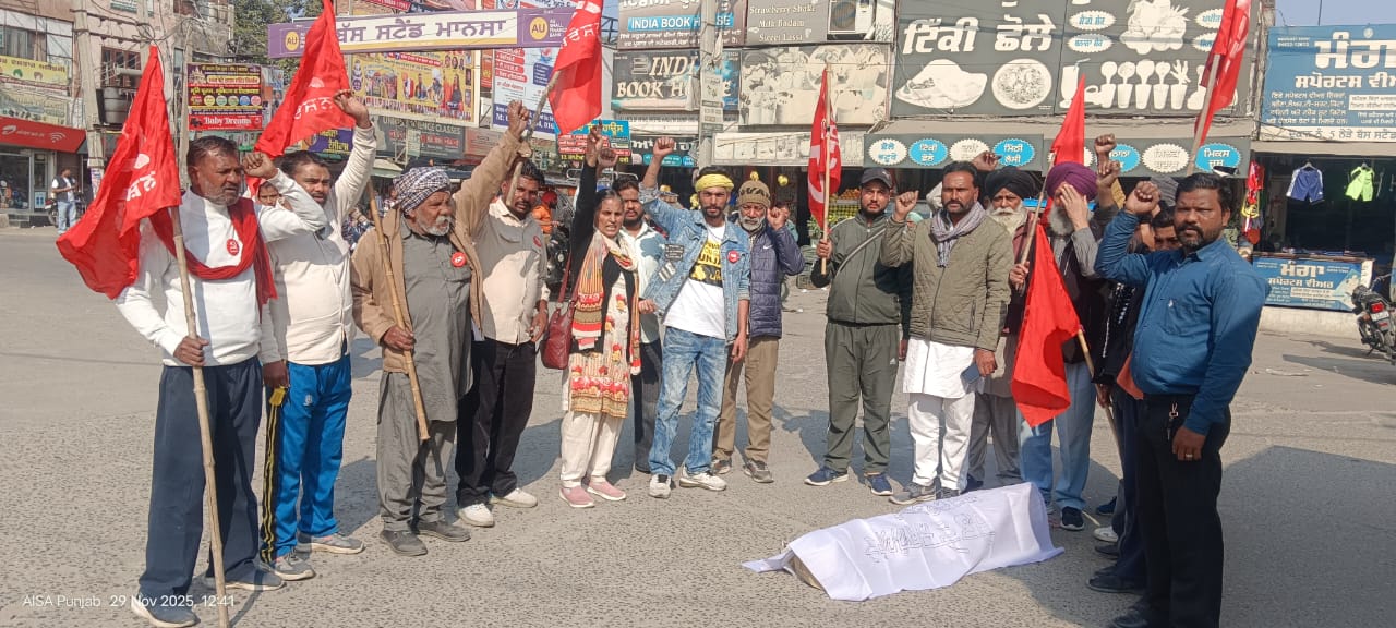 ਮਜ਼ਦੂਰ ਜਥੇਬੰਦੀਆਂ ਦੇ ਸੱਦੇ ‘ਤੇ ‘ਚਾਰ ਲੇਬਰ ਕੋਡ’ ਰੱਦ ਕਰਵਾਉਣ ਲਈ ਮੋਦੀ ਸਰਕਾਰ ਦੀ ਅਰਥੀ ਫੂਕੀ ਗਈ