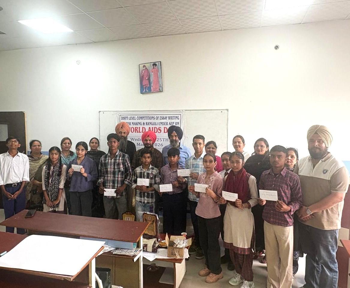ਕਿਸ਼ੋਰ ਸਿੱਖਿਆ ਪ੍ਰੋਗ੍ਰਾਮ ਅਧੀਨ ਵਿਸ਼ਵ ਏਡਜ ਦਿਵਸ ਤੇ ਜਿਲਾ ਪੱਧਰੀ ਮੁਕਾਬਲੇ ਕਰਵਾਏ- ਪੁਰੇਵਾਲ