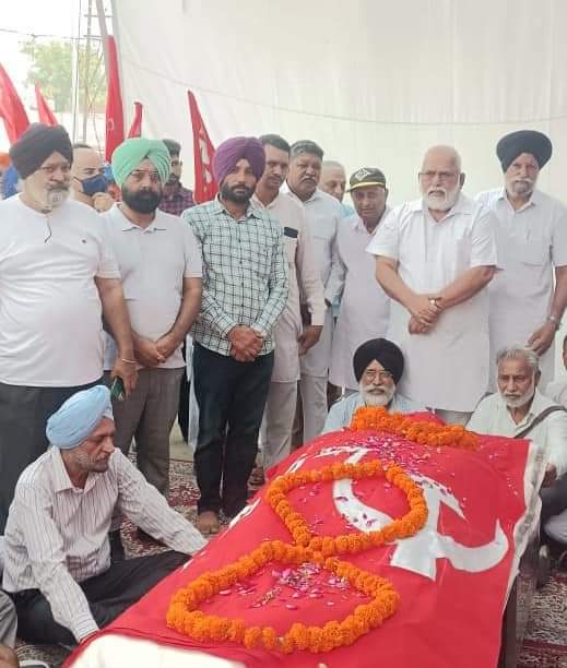 ਪ੍ਰਮੁੱਖ ਹਸਤੀਆਂ ਸੰਸਕਾਰ ਸਮੇਂ ਪੁੱਜੀਆਂ, ਪਾਰਟੀ ਦੇ ਝੰਡੇ ਵਿੱਚ ਦੇਹ ਨੂੰ ਲਪੇਟਿਆ