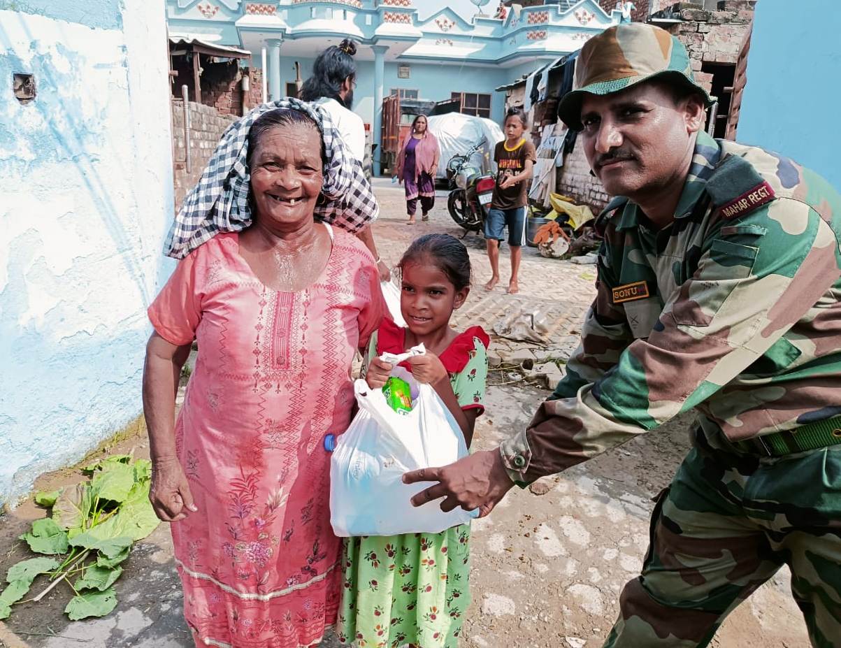 ਗੁਰਦਾਸਪੁਰ, 19 ਅਗਸਤ (ਸਰਬਜੀਤ ਸਿੰਘ)–ਜ਼ਿਲ੍ਹਾ ਗੁਰਦਾਸਪੁਰ ਦੇ ਬਿਆਸ ਦਰਿਆ ਨਾਲ ਲੱਗਦੇ ਬੇਟ ਇਲਾਕੇ ਵਿੱਚ ਆਏ ਹੜ੍ਹਾਂ ਦੌਰਾਨ ਜ਼ਿਲ੍ਹਾ ਪ੍ਰਸ਼ਾਸਨ ਦੇ ਮੋਢੇ ਨਾਲ ਮੋਢਾ ਜੋੜ ਕੇ ਭਾਰਤੀ ਫ਼ੌਜ ਦੇ ਜਵਾਨਾਂ ਵੱਲੋਂ ਵੀ ਰਾਹਤ ਕਾਰਜਾਂ ਵਿੱਚ ਵੱਧ-ਚੜ੍ਹ ਕੇ ਹਿੱਸਾ ਲਿਆ ਜਾ ਰਿਹਾ ਹੈ। ਫ਼ੌਜੀ ਜਵਾਨ ਰਾਹਤ ਕਾਰਜਾਂ ਦੌਰਾਨ ਆਪਣੀ ਸੇਵਾ ਦੇ ਨਾਲ ਹੜ੍ਹ ਪੀੜਤਾਂ ਦੇ ਦਿਲ ਵੀ ਜਿੱਤ ਰਹੇ ਹਨ।
