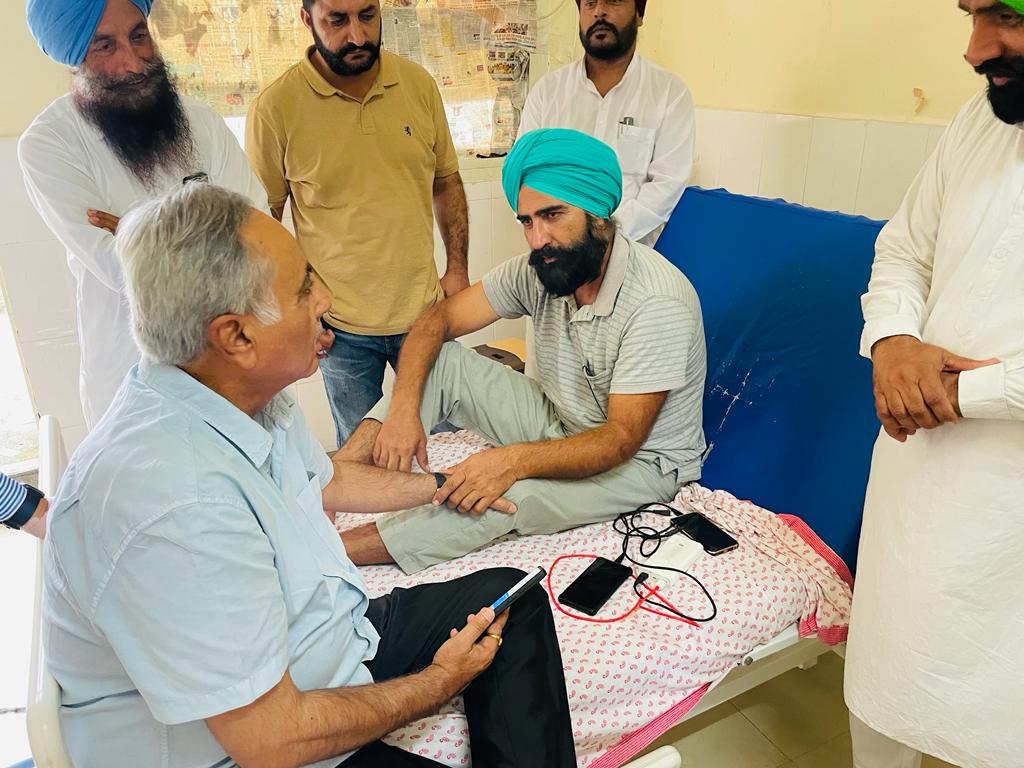 ਗੁਰਦਾਸਪੁਰ, 20 ਸਤੰਬਰ (ਸਰਬਜੀਤ ਸਿੰਘ)– ਪੰਜਾਬ ਹੈਲਥ ਸਿਸਟਮਜ਼ ਕਾਰਪੋਰੇਸ਼ਨ ਦੇ ਚੇਅਰਮੈਨ ਰਮਨ ਬਹਿਲ ਨੇ ਅੱਜ ਜ਼ਿਲ੍ਹਾ ਹਸਤਪਾਲ ਬੱਬਰੀ (ਗੁਰਦਾਸਪੁਰ) ਵਿਖੇ ਪਹੁੰਚ ਕੇ ਜਮਹੂਰੀ ਕਿਸਾਨ ਸਭਾ ਦੇ ਜ਼ਿਲ੍ਹਾ ਪ੍ਰਧਾਨ ਹਰਜੀਤ ਸਿੰਘ ਕਾਹਲੋਂ ਦੇ ਛੋਟੇ ਭਰਾ ਹਰਪ੍ਰੀਤ ਸਿੰਘ ਕਾਹਲੋਂ ਜਿਸਨੂੰ ਬੀਤੇ ਦਿਨ ਕੁਝ ਸਮਾਜ ਵਿਰੋਧੀ ਅਨਸਰਾਂ ਵੱਲੋਂ ਗੋਲੀ ਮਾਰ ਕੇ ਜ਼ਖਮੀ ਕਰ ਦਿੱਤਾ ਸੀ, ਉਸਦਾ ਹਾਲ-ਚਾਲ ਜਾਣਿਆ ਹੈ। ਇਸ ਮੌਕੇ ਉਨ੍ਹਾਂ ਨਾਲ ਐੱਸ.ਐੱਸ.ਪੀ. ਗੁਰਦਾਸਪੁਰ ਹਰੀਸ਼ ਦਾਯਮਾ ਵੀ ਮੌਜੂਦ ਸਨ।