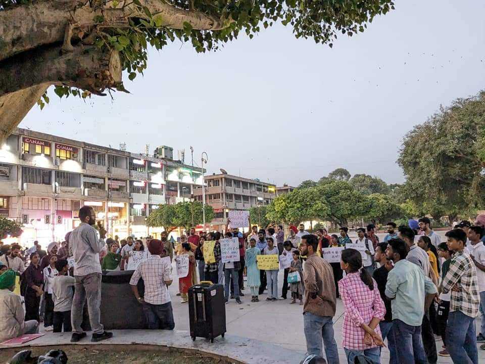 ਚੰਡੀਗੜ੍ਹ, ਗੁਰਦਾਸਪੁਰ, 5 ਅਕਤੂੂਬਰ (ਸਰਬਜੀਤ ਸਿੰਘ)– ਚੰਡੀਗੜ੍ਹ ਦੇ ਸੈਕਟਰ 17 ਵਿੱਚ ਨੌਜਵਾਨ ਭਾਰਤ ਸਭਾ ਤੇ ਪੰਜਾਬ ਸਟੂਡੈਂਟਸ ਯੂਨੀਅਨ (ਲਲਕਾਰ) ਵੱਲੋਂ ਦਿੱਲੀ ਵਿੱਚ ਕਈ ਪੱਤਰਕਾਰਾਂ ਦੇ ਘਰਾਂ ਵਿੱਚ ਮਾਰੀ ਛਾਪੇਮਾਰੀ ਕਤੇ ਉਹਨਾਂ ਨੂੰ ਹਿਰਾਸਤ ਵਿੱਚ ਲੈਣ ਦੀ ਅੱਤ ਨਿੰਦਣਯੋਗ ਘਟਨਾ ਖ਼ਿਲਾਫ਼ ਰੋਸ ਮੁਜਾਹਰਾ ਕੀਤਾ ਗਿਆ।