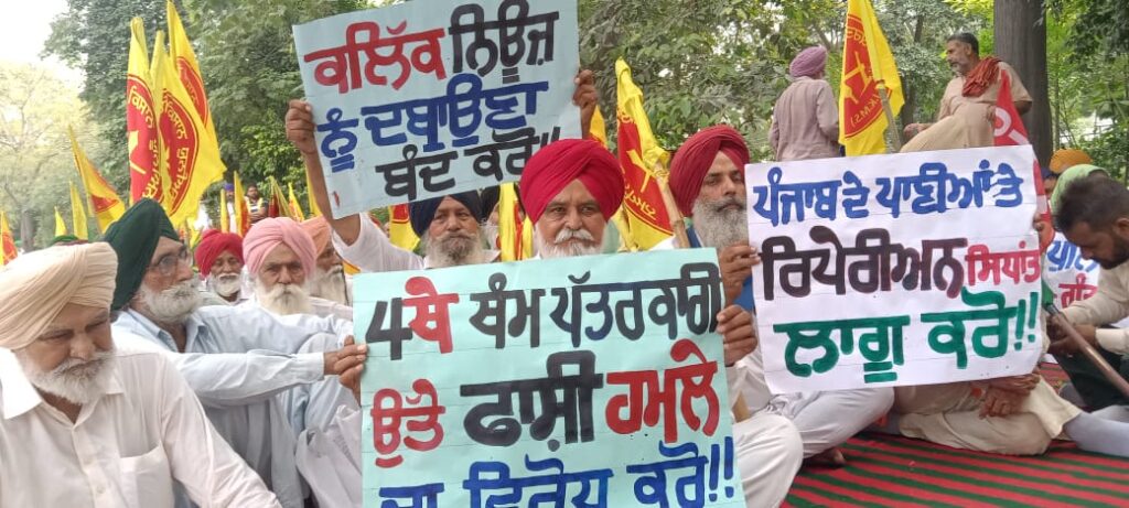 ਜਗਰਾਉਂ , ਗੁਰਦਾਸਪੁਰ, 10 ਅਕਤੂਬਰ (ਸਰਬਜੀਤ ਸਿੰਘ)– ਕਿਰਤੀ ਕਿਸਾਨ ਯੂਨੀਅਨ ਦੇ ਸੂਬਾਈ ਸੱਦੇ ਤੇ ਅੱਜ ਜਗਰਾਉਂ ਵਿਖੇ ਦਿੱਲੀ ਪੁਲੀਸ ਦੇ ਵਿਸ਼ੇਸ਼ ਸੈੱਲ ਵੱਲੋਂ ਆਨਲਾਈਨ ਨਿਊਜ਼ ‘ਨਿਊਜ਼ ਕਲਿੱਕ’ ਦੇ ਦਫ਼ਤਰ ਨੂੰ ਸੀਲ ਕਰਨ, ਇਸ ਨਾਲ ਸਬੰਧਤ ਪੱਤਰਕਾਰਾਂ ਦੇ ਟਿਕਾਣਿਆਂ ਉੱਪਰ ਛਾਪੇ ਮਾਰਨ, ਉਹਨਾਂ ਨੂੰ ਪੁਲੀਸ ਹਿਰਾਸਤ ਵਿੱਚ ਲੈ ਕੇ ਪੁੱਛਗਿੱਛ ਕਰਨ ਅਤੇ ਐਸ.ਵਾਈ.ਐਲ. ਨਹਿਰ ਦੇ ਮੁੱਦੇ ’ਤੇ ਸੁਪਰੀਮ ਕੋਰਟ ਵੱਲੋਂ ਪੰਜਾਬ ਦੇ ਖ਼ੇਤਰ ਵਿੱਚ ਨਹਿਰ ਦੀ ਉਸਾਰੀ ਲਈ ਸਰਵੇ ਕਰਨ ਦੇ ਦਿੱਤੇ ਹੁਕਮਾਂ ਦੇ ਵਿਰੋਧ ਵਿੱਚ ਰੋਸ ਪ੍ਰਦਰਸ਼ਨ ਕੀਤਾ ਗਿਆ।