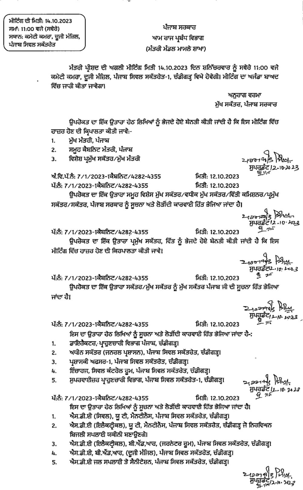 ਮੰਤਰੀ ਮੰਡਲ ਦੀ ਮੀਟਿੰਗ ਕੱਲ੍ਹ ਚੰਡੀਗੜ੍ਹ October 13, 2023October 13, 2023josh newsLeave a Comment on ਮੰਤਰੀ ਮੰਡਲ ਦੀ ਮੀਟਿੰਗ ਕੱਲ੍ਹ ਚੰਡੀਗੜ੍ਹ, ਗੁਰਦਾਸਪੁਰ, 13 ਅਕਤੂਬਰ (ਸਰਬਜੀਤ ਸਿੰਘ)– ਪੰਜਾਬ ਮੰਤਰੀ ਮੰਡਲ ਦੀ ਅਹਿਮ ਮੀਟਿੰਗ 14 ਅਕਤੂਬਰ ਨੂੰ ਚੰਡੀਗੜ੍ਹ ਵਿੱਚ ਬੁਲਾਈ ਗਈ ਹੈ।