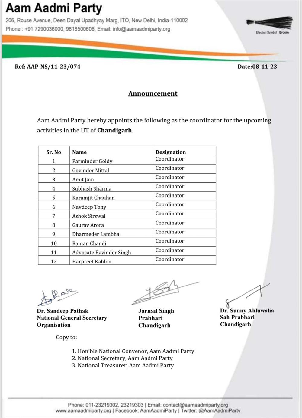 ਆਮ ਆਦਮੀ ਪਾਰਟੀ ਨੇ ਚੰਡੀਗੜ੍ਹ ‘ਚ 12 ਕੋਆਰਡੀਨੇਟਰ ਲਗਾਏ ਚੰਡੀਗੜ੍ਹ November 9, 2023November 9, 2023josh newsLeave a Comment on ਆਮ ਆਦਮੀ ਪਾਰਟੀ ਨੇ ਚੰਡੀਗੜ੍ਹ ‘ਚ 12 ਕੋਆਰਡੀਨੇਟਰ ਲਗਾਏ ਚੰਡੀਗੜ੍ਹ, ਗੁਰਦਾਸਪੁਰ, 9 ਨਵੰਬਰ (ਸਰਬਜੀਤ ਸਿੰਘ)– ਆਮ ਆਦਮੀ ਪਾਰਟੀ ਵੱਲੋਂ ਚੰਡੀਗੜ੍ਹ ਦੇ 12 ਕੋਆਰਡੀਨੇਟਰ ਲਗਾਏ ਗਏ ਹਨ।