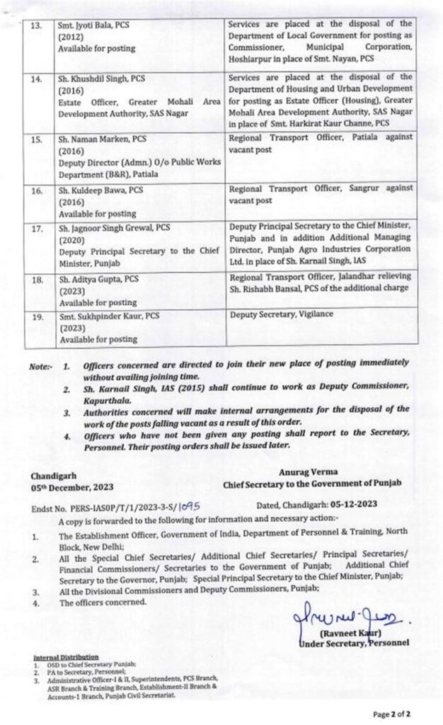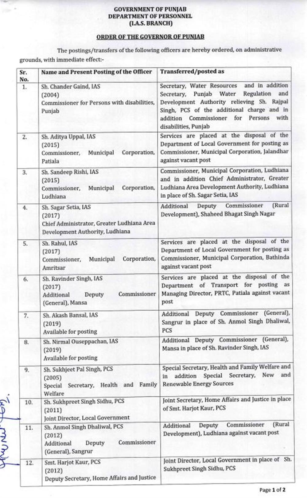 ਪੰਜਾਬ ਸਰਕਾਰ ਵੱਲੋਂ ਆਈ.ਏ.ਐਸ ਅਤੇ ਪੀ.ਸੀ.ਐਸ ਅਧਿਕਾਰੀਆਂ ਦੀਆਂ ਬਦਲੀਆਂ ਚੰਡੀਗੜ੍ਹ December 6, 2023December 6, 2023josh newsLeave a Comment on ਪੰਜਾਬ ਸਰਕਾਰ ਵੱਲੋਂ ਆਈ.ਏ.ਐਸ ਅਤੇ ਪੀ.ਸੀ.ਐਸ ਅਧਿਕਾਰੀਆਂ ਦੀਆਂ ਬਦਲੀਆਂ ਚੰਡੀਗੜ੍ਹ, ਗੁਰਦਾਸਪੁਰ, 6 ਦਸੰਬਰ (ਸਰਬਜੀਤ ਸਿੰਘ)– ਪੰਜਾਬ ਸਰਕਾਰ ਵੱਲੋਂ 19 ਆਈਏਐਸ ਅਤੇ ਪੀਸੀਐਸ ਅਧਿਕਾਰੀਆਂ ਦੀਆਂ ਬਦਲੀਆਂ ਕੀਤੀਆਂ ਗਈਆਂ ਹਨ।