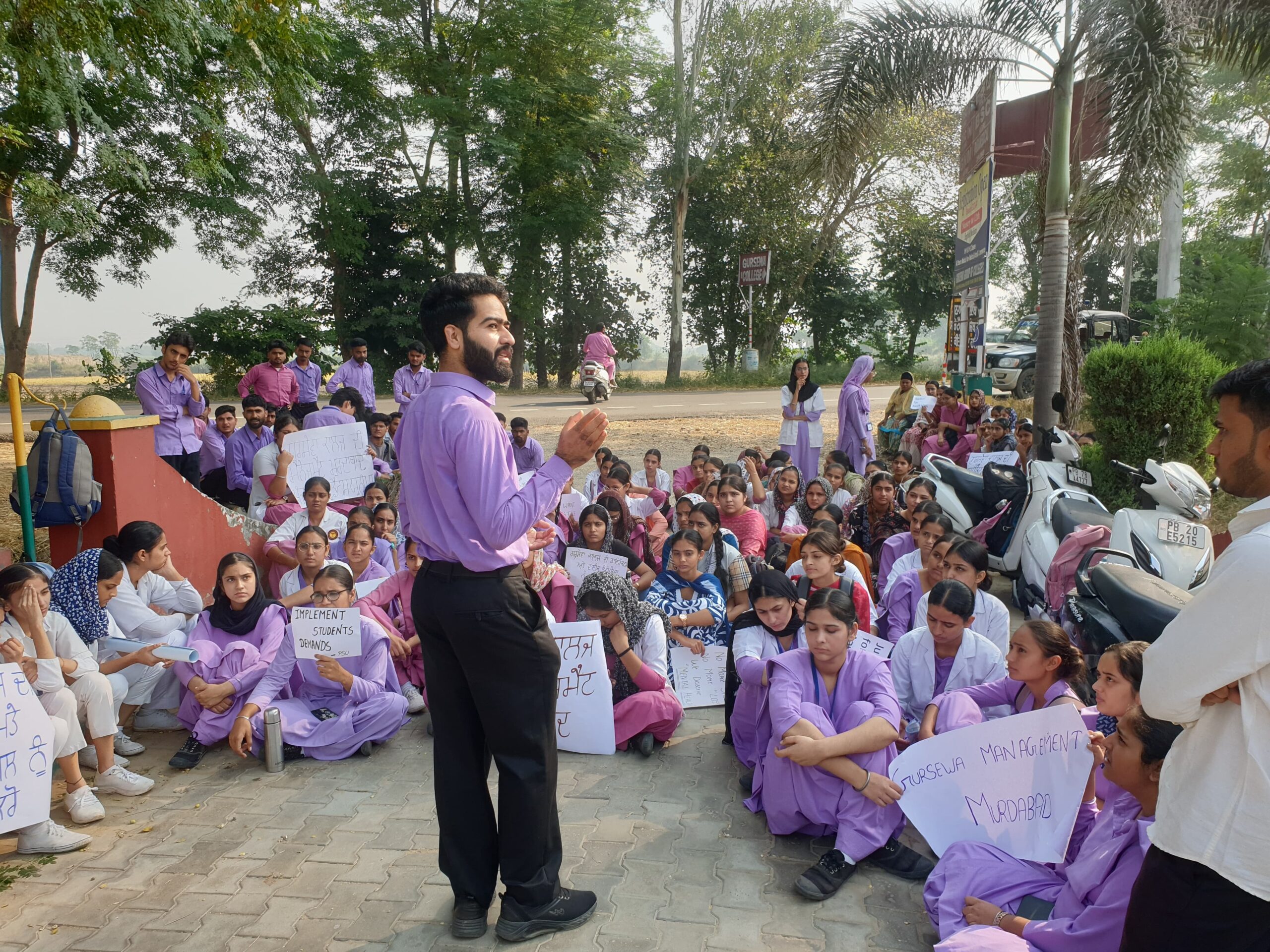 ਗੜ੍ਹਸ਼ੰਕਰ, ਗੁਰਦਾਸਪੁਰ, 19 ਅਕਤੂਬਰ (ਸਰਬਜੀਤ ਸਿੰਘ)– ਗੁਰਸੇਵਾ ਨਰਸਿੰਗ ਕਾਲਜ ਦੀ ਮੈਂਨਜਮੈਂਟ ਵਲੋ ਆਸ਼ਿਕ ਖਾਨ ਨਾਂ ਦੇ ਵਿਦਿਆਰਥੀ ਨੂੰ ਖੁਦਕਸ਼ੀ ਲਈ ਮਜਬੂਰ ਕਰਨ ਵਾਲੇ ਮੁਲਜਮਾਂ ਖਿਲਾਫ 306 ਦਾ ਮੁਕੱਦਮਾ ਦਰਜ ਹੋਣ ਦੇ ਬਾਵਜੂਦ ਵੀ ਗ੍ਰਿਫਤਾਰ ਨਹੀਂ ਕੀਤਾ ਗਿਆ,ਜਿਸ ਦੇ ਰੋਸ਼ ਵਜੋਂ ਪੰਜਾਬ ਸਟੂਡੈਂਟਸ ਯੂਨੀਅਨ ਦੀ ਅਗਵਾਈ ਹੇਠ ਵਿਦਿਆਰਥੀਆਂ ਨੇ ਕਾਲਜ ਦੇ ਅੱਗੇ ਧਰਨਾ ਦਿੱਤਾ। ਇਸ ਸਬੰਧੀ ਜਾਣਕਾਰੀ ਦਿੰਦੇ ਹੋਏ ਪੰਜਾਬ ਸਟੂਡੈਂਟਸ ਯੂਨੀਅਨ ਦੇ ਸੂਬਾ ਵਿੱਤ ਸਕੱਤਰ ਬਲਜੀਤ ਧਰਮਕੋਟ,ਜਿਲ੍ਹਾ ਆਗੂ ਰਾਜੂ ਬਰਨਾਲਾ,ਕਾਲਜ ਦੇ ਵਿਦਿਆਰਥੀ ਆਗੂ ਹਾਦੀ ਹੁਸੈਨ ਸ਼ੇਕ ਅਤੇ ਇਮਤਿਆਜ਼ ਖਾਨ ਨੇ ਕਿਹਾ ਕਿ ਕਾਲਜ ਦੇ ਵਿਦਿਆਰਥੀ ਨੂੰ ਖੁਦਕੁਸ਼ੀ ਦੇ ਲਈ ਮਜਬੂਰ ਕਰਨਲਈ ਜਿੰਮੇਵਾਰ ਅਧਿਕਾਰੀਆਂ ਜਿਸ ਵਿੱਚ ਕਾਲਜ ਦੀ ਡਾਇਰੈਕਟਰ ਦਵਿੰਦਰ ਕੌਰ ਰਾਏ ਅਤੇ ਵਾਈਜ਼ ਪ੍ਰਿੰਸੀਪਲ ਕਮਲਦੀਪ ਕੌਰ ਸ਼ਾਮਿਲ ਹੈ,ਨੂੰ ਗ੍ਰਿਫਤਾਰ ਨਹੀਂ ਕੀਤਾ ਗਿਆ ਅਤੇ ਨਾ ਹੀ ਵਿਦਿਆਰਥੀਆਂ ਮੰਗਾਂ ਨੂੰ ਅਜੇ ਤੱਕ ਮੰਨਿਆ ਗਿਆ,ਜਿਸ ਦੇ ਰੋਜ਼ ਵਜੋਂ ਲਗਾਤਾਰ ਵਿਦਿਆਰਥੀ ਧਰਨੇ ਉੱਤੇ ਬੈਠੇ ਹਨ. ਇਸ ਦੇ ਉਲਟ ਮੈਨਜਮੈਂਟ ਵਲੋਂ ਸ਼ਾਂਤੀ ਪੂਰਵਕ ਚੱਲ ਰਹੇ ਰੋਸ ਪ੍ਰਦਰਸ਼ਨ ਦੇ ਵਿੱਚ ਕੁਝ ਸ਼ਰਾਰਤੀ ਅਨਸਰ ਭੇਜ ਕੇ ਮਾਹੌਲ ਖਰਾਬ ਕਰਨ ਦੀ ਕੋਸ਼ਿਸ਼ ਕੀਤੀ ਜਾ ਰਹੀ ਹੈ।ਆਗੂਆਂ ਨੇ ਕਿਹਾ ਕਿ ਮੈਨੇਜਮੈਂਟ ਵਲੋਂ ਵਿਦਿਆਰਥੀਆਂ ਨੂੰ ਡਰਾ ਧਮਕਾ ਕੇ ਨਜਾਇਜ਼ ਫੀਸਾਂ ਅਤੇ ਜੁਰਮਾਨੇ ਵਸੂਲੇ ਜਾਂਦੇ ਹਨ,ਕਾਲਜ ਦਾ ਸਮਾਂ 9 ਵਜੇ ਨਾ ਹੋਣ ਦੀ ਬਜਾਏ :830ੇ ਰੱਖਿਆ ਹੈ ਅਤੇ ਜੇਕਰ ਕੋਈ ਲੇਟ ਹੋ ਜਾਂਦਾ ਹੈ ਤਾਂ ਉਸ ਨੂੰ ਵੀ ਭਾਰੀ ਜੁਰਮਾਨਾ ਕੀਤਾ ਜਾਂਦਾ,ਹੋਸਟਲ ਵਾਲੇ ਵਿਦਿਆਰਥੀਆਂ ਨੂੰ ਵੀ ਖਰਾਬ ਖਾਣਾ ਦਿੱਤਾ ਜਾਂਦਾ ਹੈ,ਜਿਸ ਦੇ ਕਰਕੇ ਕਈ ਵਾਰ ਵਿਦਿਆਰਥੀ ਬਿਮਾਰ ਹੋਏ ਹਨ,ਬਹੁਤ ਸਾਰੇ ਵਿਦਿਆਰਥੀਆਂ ਦਾ ਦਾਖਲਾ ਕੌਂਸਲਿੰਗ ਰਾਹੀਂ ਹੋਣ ਦੇ ਬਾਵਜੂਦ ਵੀ ਉਨਾਂ ਵੱਲੋਂ ਫੀਸ ਲਏ ਜਾਣ ਦੇ ਬਾਵਜੂਦ ਵੀ ਦਾਖਲਾ ਨਹੀਂ ਦਿੱਤਾ ਗਿਆ,ਪੋਸਟ ਮੈਟਰਿਕ ਸਕਾਲਰਸ਼ਿਪ ਸਕੀਮ ਦੀ ਵੀ ਉਲੰਘਣਾ ਕਰਕੇ ਐਸ.ਸੀ/ਐਸ.ਟੀ ਵਿਦਿਆਰਥੀਆਂ ਕੋਲੋਂ ਦਾਖਲੇ ਸਮੇਂ ਫੀਸਾਂ ਵਸੂਲੀਆਂ ਜਾਂਦੀਆਂ ਹਨ,ਜਦਕਿ ਦਾਖਲੇ ਸਮੇਂ ਉਹਨਾਂ ਕੋਲੋਂ ਕੋਈ ਵੀ ਨਾ ਮੁੜਨ ਯੋਗ ਫੀਸ ਅਤੇ ਫੰਡ ਨਹੀਂ ਲਿਆ ਜਾ ਸਕਦਾ! ਵਿਦਿਆਰਥੀ ਆਗੂਆਂ ਨੇ ਕਿਹਾ ਕਿ ਜੇਕਰ ਕੱਲ ਦੀ ਮੀਟਿੰਗ ਦੇ ਵਿੱਚ ਇਹਨਾਂ ਮੰਗਾਂ ਦੇ ਪ੍ਰਤੀ ਗੰਭੀਰਤਾ ਨਾਲ ਹੱਲ ਨਾ ਕੀਤਾ ਗਿਆ ਤਾਂ ਆਉਣ ਵਾਲੇ ਸਮੇਂ ਦੇ ਵਿੱਚ ਵੱਡਾ ਸੰਘਰਸ਼ ਕੀਤਾ ਜਾਵੇਗਾ, ਜਿਸ ਦਾ ਜਿੰਮੇਵਾਰ ਜ਼ਿਲ੍ਹਾ ਪ੍ਰਸ਼ਾਸਨ ਹੋਵੇਗਾ.ਇਸ ਮੌਕੇ ਕਾਲਜ ਦੀ ਮੈਨੇਜਮੈਂਟ ਵਿਰੁੱਧ ਜੋਰਦਾਰ ਨਾਰੇਬਾਜੀ ਕੀਤੀ ਗਈ.ਰੋਸ ਪ੍ਰਦਰਸ਼ਨ ਦੇ ਵਿੱਚ ਅਸ਼ਵਨੀ ਕੁਮਾਰ,ਰਫ਼ਾਤਕ਼ ਹੁਸੈਨ,ਸੋਇਬ,ਯਾਕੂਬ, ਰੋਹਿਤ,ਲਵਪ੍ਰੀਤ ਕੌਰ,ਜਸਪ੍ਰੀਤ ਕੌਰ,ਅਮਨਦੀਪ ਕੌਰ,ਪ੍ਰਿਆ,ਅੰਮ੍ਰਿਤ ਕੌਰ,ਹਰਸਿਮਰਨਪ੍ਰੀਤ ਕੌਰ,ਦਿਕਸ਼ਾ, ਸਿਮਰਨ ਕੌਰ,ਮਨਪ੍ਰੀਤ ਕੌਰ,ਸੋਹੇਲ, ਅਰਮਾਨ ਆਦਿ ਮੌਜੂਦ ਸਨ।