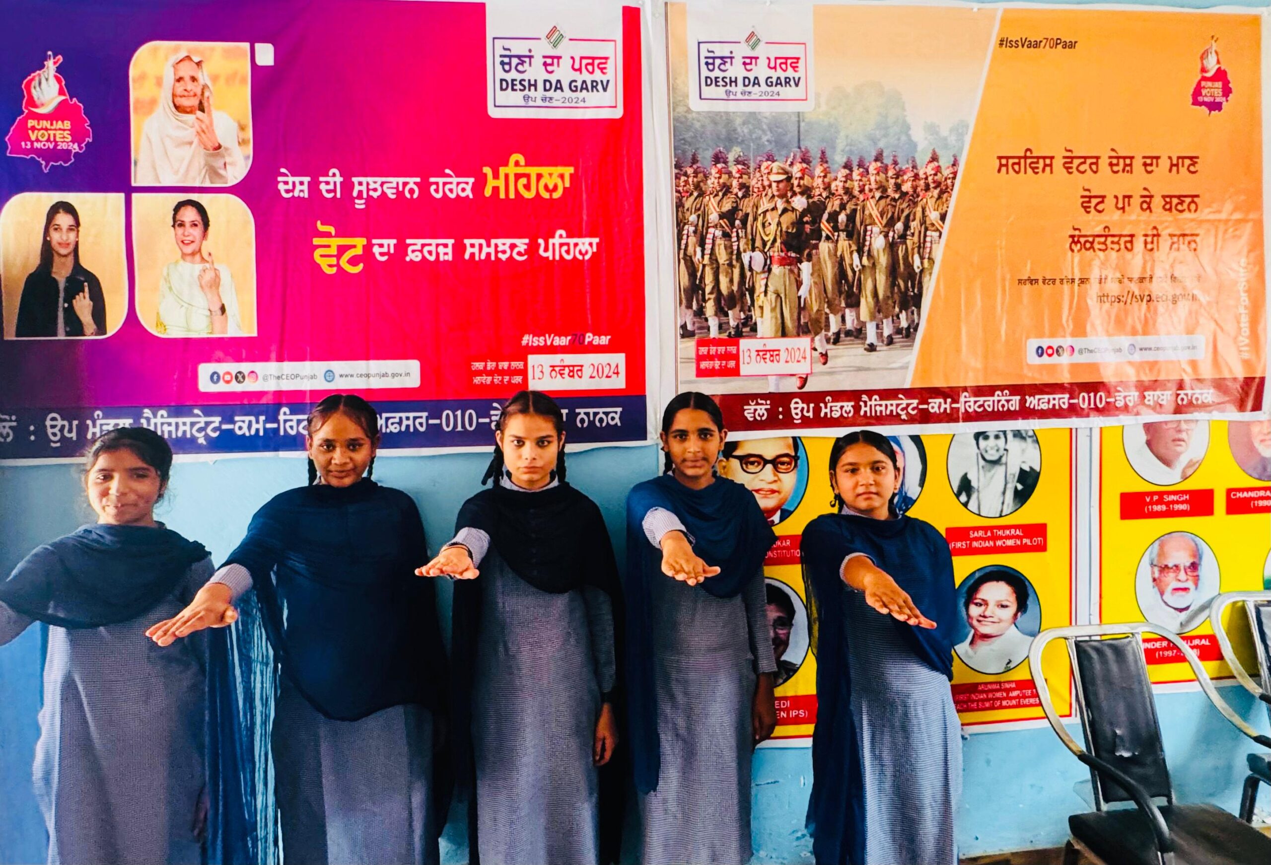 ਇਸ ਮੌਕੇ ਜਾਣਕਾਰੀ ਦਿੰਦਿਆਂ ਸਵੀਪ ਟੀਮ ਮੈਂਬਰ ਗੁਰਮੀਤ ਸਿੰਘ ਬਾਜਵਾ ਨੇ ਦੱਸਿਆ ਕਿ ਸਵੀਪ ਟੀਮ ਵੱਲੋਂ ਉੱਪ ਚੋਣ 2024 ਡੇਰਾ ਬਾਬਾ ਨਾਨਕ ਵਿਖੇ ਸਵੀਪ ਗਤੀਵਿਧੀਆਂ ਦੁਆਰਾ ਆਮ ਨਾਗਰਿਕਾਂ ਤੇ ਵਿਦਿਆਰਥੀਆਂ ਨੂੰ ਵੋਟ ਦੇ ਹੱਕ ਦਾ ਇਸਤੇਮਾਲ ਕਰਨ ਪ੍ਰਤੀ ਪ੍ਰੇਰਿਤ ਕੀਤਾ ਗਿਆ ਹੈ। ਉਨ੍ਹਾਂ ਵਿਦਿਆਰਥੀਆਂ ਨੂੰ ਬਿਨ੍ਹਾਂ ਕਿਸੇ ਡਰ, ਭੈਅ ਤੇ ਲਾਲਚ ਤੋਂ ਵੋਟ ਦਾ ਅਧਿਕਾਰ ਇਸਤੇਮਾਲ ਕਰਨ ਲਈ ਪ੍ਰੇਰਿਤ ਕੀਤਾ। ਇਸ ਦੌਰਾਨ ਵੋਟ ਦੇ ਅਧਿਕਾਰ ਪ੍ਰਤੀ ਜਾਗਰੂਕ ਕਰਨ ਲਈ ਵਿਦਿਆਰਥੀਆਂ ਵਿੱਚ ਪੋਸਟਰ ਬਣਾਉਣ ਅਤੇ ਭਾਸ਼ਣ ਮੁਕਾਬਲੇ ਵੀ ਕਰਵਾਏ ਗਏ।