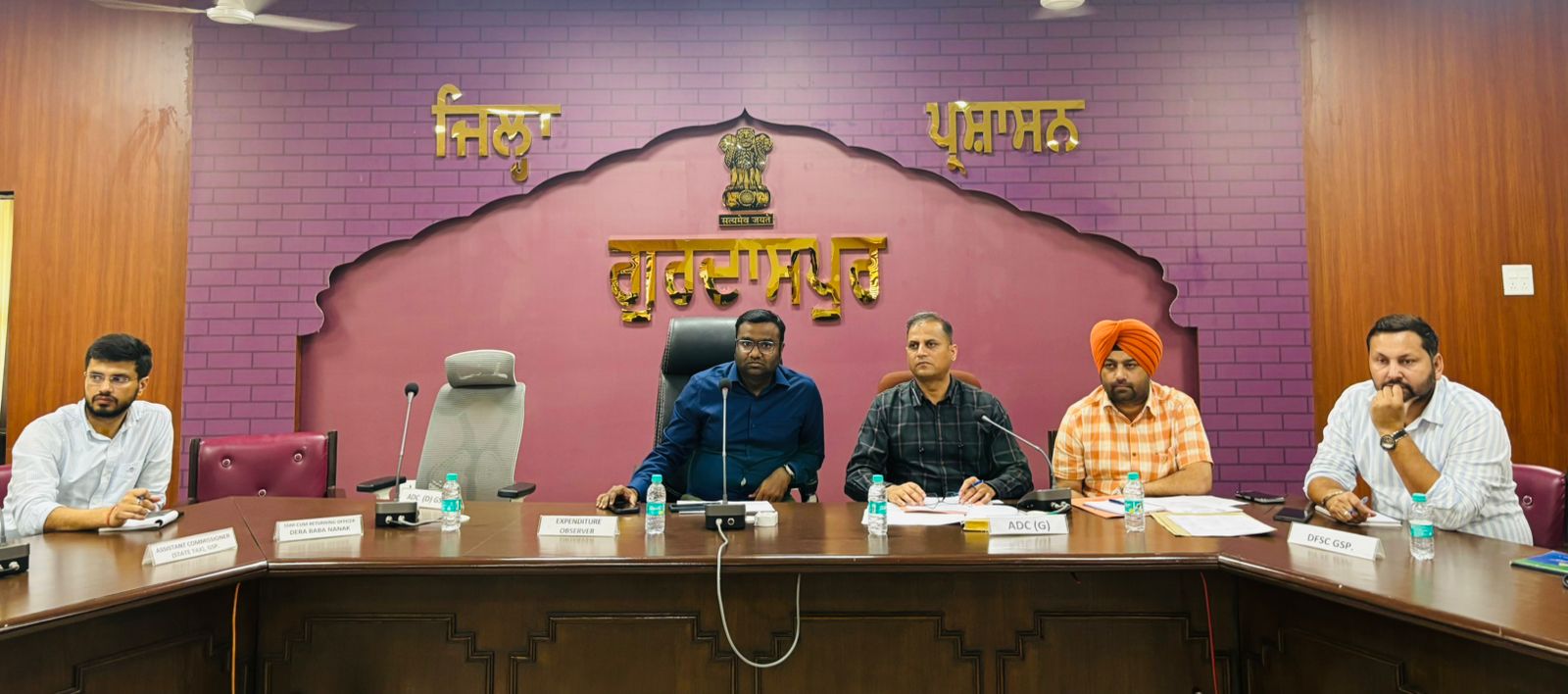 ਗੁਰਦਾਸਪੁਰ, 25 ਅਕਤੂਬਰ (ਸਰਬਜੀਤ ਸਿੰਘ)– ਜਿਮਨੀ ਚੋਣ ਡੇਰਾ ਬਾਬਾ ਨਾਨਕ-2024 ਲਈ ਮਾਣਯੋਗ ਭਾਰਤ ਚੋਣ ਕਮਿਸ਼ਨ ਵੱਲੋਂ ਨਿਯੁਕਤ ਕੀਤੇ ਪੀ.ਪਚਿਯੱਪਨ ਅੱਜ ਗੁਰਦਾਸਪੁਰ ਪਹੁੰਚੇ ਅਤੇ ਉਨ੍ਹਾਂ ਵੱਲੋਂ ਜ਼ਿਮਨੀ ਚੋਣ ਡੇਰਾ ਬਾਬਾ ਨਾਨਕ ਲਈ ਗਠਿਤ ਵੱਖ-ਵੱਖ ਟੀਮਾਂ ਦੇ ਨੋਡਲ ਅਫਸਰਾਂ ਨਾਲ ਮੀਟਿੰਗ ਕੀਤੀ ਗਈ। ਇਸ ਮੌਕ ਸੁਰਿੰਦਰ ਸਿੰਘ, ਵਧੀਕ ਜ਼ਿਲ੍ਹਾ ਚੋਣ ਅਫਸਰ ਗੁਰਦਾਸਪੁਰ, ਜਸਵੰਤ ਕੌਰ ਐਸ.ਪੀ.(ਐਚ) ਬਟਾਲਾ, ਡੀਐਸਪੀ, ਸੁਖਰਾਜ ਸਿੰਘ ਢਿੱਲੋਂ, ਡੀ.ਐਫ.ਐਸ.ਸੀ. ਸੁਖਜਿੰਦਰ ਸਿੰਘ, ਚੋਣ ਤਹਿਸਿਲਦਾਰ ਮਨਜਿੰਦਰ ਸਿੰਘ ਸਮੇਤ ਵੱਖ-ਵੱਖ ਅਧਿਕਾਰੀ ਮੌਜੂਦ ਸਨ।