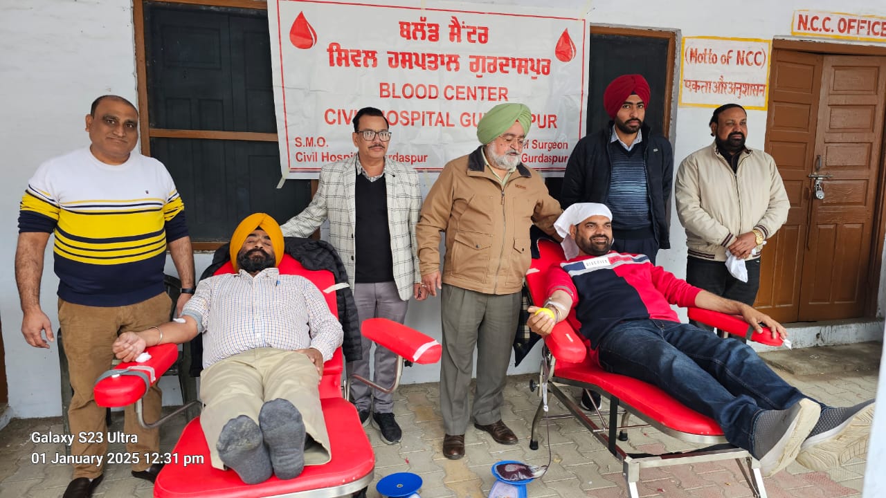 ਗੁਰਦਾਸਪੁਰ, 1 ਜਨਵਰੀ (ਸਰਬਜੀਤ ਸਿੰਘ) – ਦੀ ਰੈਵੀਨਿਊ ਪਟਵਾਰ ਯੂਨੀਅਨ ਅਤੇ ਕਾਨੂੰਗੋ ਐਸੋਸੀਏਸ਼ਨ ਵੱਲੋਂ ਨਵੇਂ ਸਾਲ ਦੀ ਖ਼ੁਸ਼ੀ ਵਿੱਚ ਅੱਜ ਗੁਰਦੁਆਰਾ ਸਿੰਘ ਸਭਾ, ਗੁਰਦਾਸਪੁਰ ਵਿਖੇ ਸ੍ਰੀ ਸੁਖਮਨੀ ਸਾਹਿਬ ਦਾ ਪਾਠ ਕਰਵਾ ਕੇ ਸਰਬੱਤ ਦੇ ਭਲੇ ਦੀ ਅਰਦਾਸ ਕੀਤੀ ਗਈ। ਇਸ ਮੌਕੇ ਦੀ ਰੈਵੀਨਿਊ ਪਟਵਾਰ ਯੂਨੀਅਨ ਅਤੇ ਕਾਨੂੰਗੋ ਐਸੋਸੀਏਸ਼ਨ ਵੱਲੋਂ ਇੱਕ ਵਿਸ਼ੇਸ਼ ਖ਼ੂਨਦਾਨ ਕੈਂਪ ਵੀ ਲਗਾਇਆ ਗਿਆ, ਜਿੱਥੇ ਪਟਵਾਰੀਆਂ ਅਤੇ ਉਨ੍ਹਾਂ ਦੇ ਸਾਥੀਆਂ ਵੱਲੋਂ ਖ਼ੂਨਦਾਨ ਕੀਤਾ ਗਿਆ।