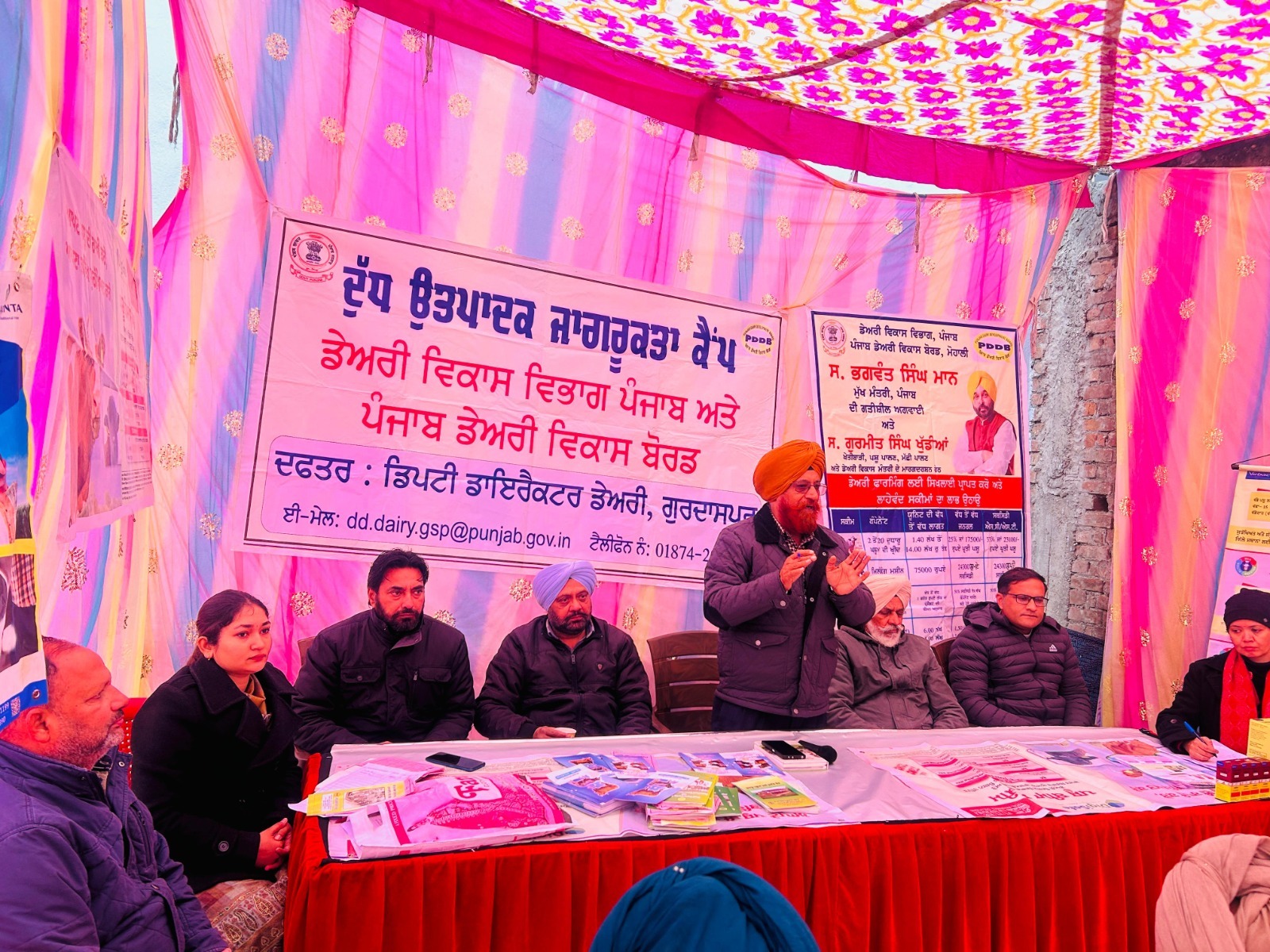 ਗੁਰਦਾਸਪੁਰ, 3 ਜਨਵਰੀ (ਸਰਬਜੀਤ ਸਿੰਘ) – ਪੰਜਾਬ ਡੇਅਰੀ ਵਿਭਾਗ ਅਤੇ ਪੰਜਾਬ ਡੇਅਰੀ ਵਿਕਾਸ ਬੋਰਡ ਵੱਲੋਂ ਡਾਇਰੈਕਟਰ ਕੁਲਦੀਪ ਸਿੰਘ ਜੱਸੋਵਖਾਲ, ਡਿਪਟੀ ਡਾਇਰੈਕਟਰ ਡੇਅਰੀ ਵਰਿਆਮ ਸਿੰਘ ਦੀ ਯੋਗ ਅਗਵਾਈ ਹੇਠ ਡੀ.ਡੀ.-6 ਸਕੀਮ ਅਧੀਨ ਅੱਜ ਬਲਾਕ ਪਿੰਡ ਅਰਜਨਪੁਰ ਗੁੰਝੀਆਂ ਵਿਖੇ ਇੱਕ ਦਿਨਾ ਦੁੱਧ ਉਤਪਾਦਕ ਜਾਗਰੂਕਤਾ ਕੈਂਪ ਲਗਾਇਆ ਗਿਆ। ਜਿਸ ਵਿੱਚ ਦੁੱਧ ਉਤਪਾਦਕਾਂ ਨੂੰ ਪਸੂਆਂ ਦੀਆਂ ਬਿਮਾਰੀਆਂ,ਇਹਨਾਂ ਦੇ ਇਲਾਜ ਅਤੇ ਹਰੇ ਚਾਰੇ ਸਬੰਧੀ ਮਾਹਿਰਾਂ ਵੱਲੋਂ ਵਿਸਥਾਰ ਪੂਰਵਕ ਜਾਣਕਾਰੀ ਦਿੱਤੀ ਗਈ। ਇਸ ਦੇ ਨਾਲ ਹੀ ਡੇਅਰੀ ਵਿਕਾਸ ਵਿਭਾਗ ਵੱਲੋਂ ਪਸੂ ਪਾਲਕਾਂ ਵਾਸਤੇ ਪੰਜਾਬ ਸਰਕਾਰ ਵੱਲੋਂ ਚਲਾਈਆਂ ਜਾ ਰਹੀਆਂ ਸਕੀਮਾਂ, ਸਬਸਿਡੀਆਂ ਅਤੇ ਬੀਮਾ ਸਕੀਮ ਸਬੰਧੀ ਵਿਸਥਾਰ ਪੂਰਵਕ ਜਾਣਕਾਰੀ ਦਿੱਤੀ ਗਈ। ਇਸ ਕੈਂਪ ਵਿੱਚ ਪਿੰਡ ਅਤੇ ਇਲਾਕੇ ਦੇ ਅਗਾਂਹਵਧੂ ਕਿਸਾਨਾਂ ਦੁੱਧ ਉਤਪਾਦਕਾਂ ਨੇ ਸ਼ਾਮਲ ਹੋ ਕੇ ਲਾਭ ਲਿਆ।