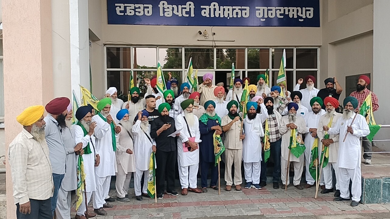 ਗੁਰਦਾਸਪੁਰ 2 ਮਈ (ਸਰਬਜੀਤ ਸਿੰਘ)– ਸੰਯੁਕਤ ਕਿਸਾਨ ਮੋਰਚਾ ਗੈਰ ਰਾਜਨੀਤਿਕ ਭਾਰਤ ਅਤੇ ਕਿਸਾਨ ਮਜ਼ਦੂਰ ਮੋਰਚੇ ਵਿੱਚ ਸ਼ਾਮਿਲ ਜਥੇਬੰਦੀਆਂ ਵੱਲੋਂ ਅੱਜ ਕਿਸਾਨ ਤੇ ਜਵਾਨ ਭਲਾਈ ਯੂਨੀਅਨ ਦੇ ਪ੍ਰਧਾਨ ਸੁਖਦੇਵ ਸਿੰਘ ਭੋਜਰਾਜ,ਪ੍ਰਧਾਨ ਸ਼ਮਸ਼ੇਰ ਸਿੰਘ ਅਠਵਾਲ,ਪ੍ਰਧਾਨ ਨਰਿੰਦਰ ਸਿੰਘ ਕੋਟਲਾ ਬਾਮਾ ਅਤੇ ਪ੍ਰਧਾਨ ਹਰਦੇਵ ਸਿੰਘ ਚਿੱਟੀ ਦੀ ਅਗਵਾਈ ਵਿੱਚ ਡਿਪਟੀ ਕਮਿਸ਼ਨਰ ਗੁਰਦਾਸਪੁਰ ਵਿਖੇ ਧਰਨਾ ਦੇਣ ਉਪਰੰਤ ਡਿਪਟੀ ਕਮਿਸ਼ਨਰ ਨੂੰ ਮੰਗ ਪੱਤਰ ਸੌਂਪ ਕੇ ਕਿਸਾਨਾਂ ਦੀਆਂ ਤੁਰੰਤ ਪੂਰੀਆਂ ਕੀਤੀਆਂ ਜਾਣ ਵਾਲੀਆਂ ਮੰਗਾਂ ਵੱਲ ਧਿਆਨ ਦਵਾਇਆ।