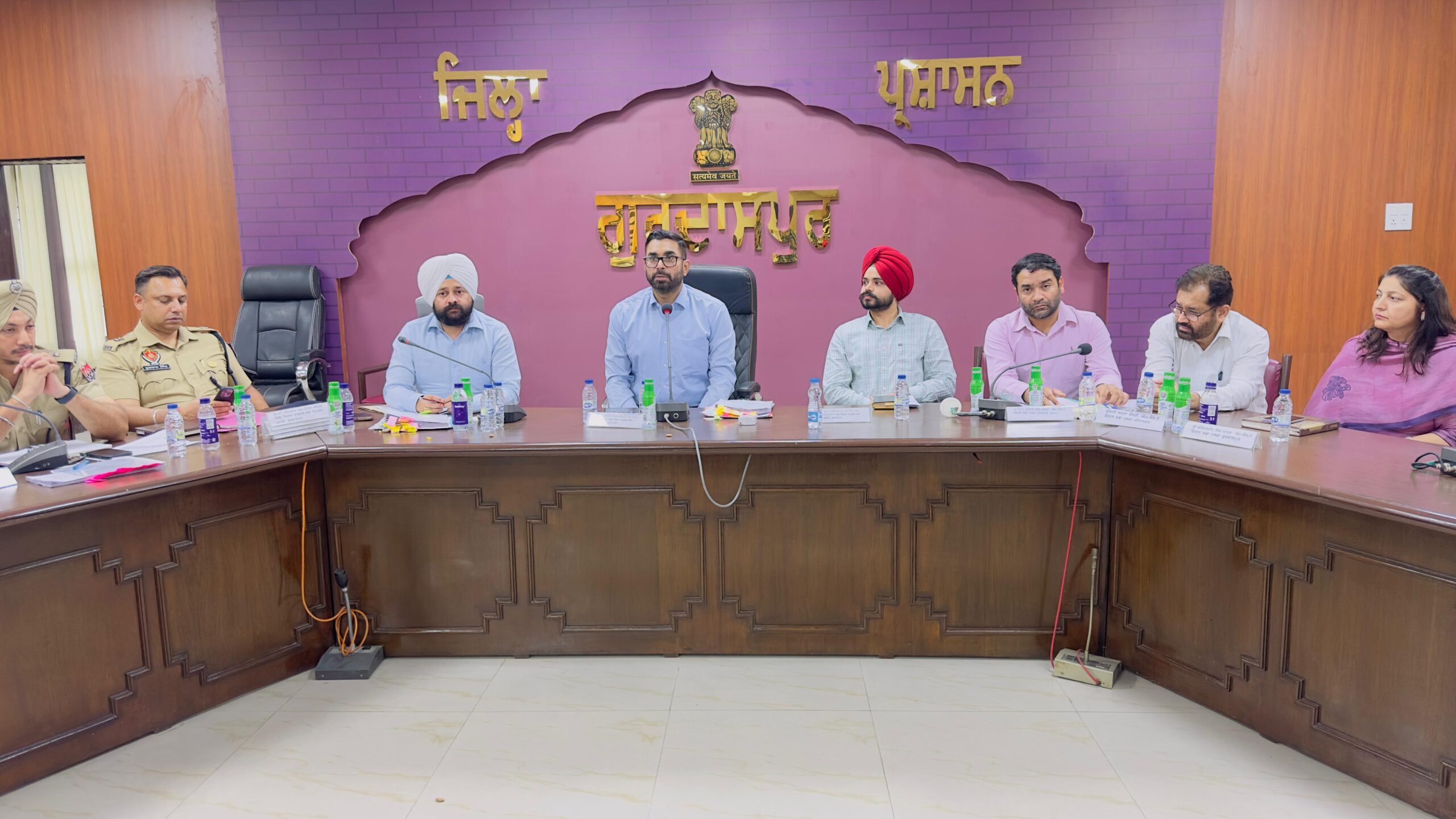 ਪੰਚਾਇਤ ਭਵਨ ਗੁਰਦਾਸਪੁਰ ਵਿਖੇ ਅਧਿਕਾਰੀਆਂ ਨਾਲ ਮੀਟਿੰਗ ਕਰਦਿਆਂ ਡਿਪਟੀ ਕਮਿਸ਼ਨਰ ਦਲਵਿੰਦਰਜੀਤ ਸਿੰਘ ਨੇ ਪੀ.ਡਬਲਿਊ.ਡੀ. ਸੀਵਰੇਜ ਬੋਰਡ, ਵਾਟਰ ਸਪਲਾਈ ਤੇ ਸੈਨੀਟੇਸ਼ਨ, ਕਾਰਪੋਰੇਸ਼ਨ , ਪਾਵਰਕਾਮ ਤੇ ਸਬੰਧਤ ਅਧਿਕਾਰੀਆਂ ਨੂੰ ਕਿਹਾ ਕਿ ਉਹ ਸਬ ਡਵੀਜ਼ਨਲ ਕੰਪਲੈਕਸ ਬਟਾਲਾ ਦੇ ਉਦਘਾਟਨ ਨੂੰ ਮੁੱਖ ਰੱਖਦਿਆਂ ਤਿਆਰੀਆਂ ਨੂੰ ਅੰਤਿਮ ਛੋਹਾਂ ਦੇ ਕੇ ਮੁਕੰਮਲ ਕਰ ਲੈਣ। ਉਨਾਂ ਅਧਿਕਾਰੀਆਂ ਨੂੰ ਕੰਪਲੈਕਸ ਦੀ ਸਾਫ-ਸਫਾਈ ਤੇ ਫਰਨੀਚਰ ਆਦਿ ਸਬੰਧੀ ਵਿਸ਼ੇਸ ਤਵੱਜੋਂ ਦੇ ਕੇ ਤਿਆਰੀਆਂ ਕਰਨ ਲਈ ਕਿਹਾ।