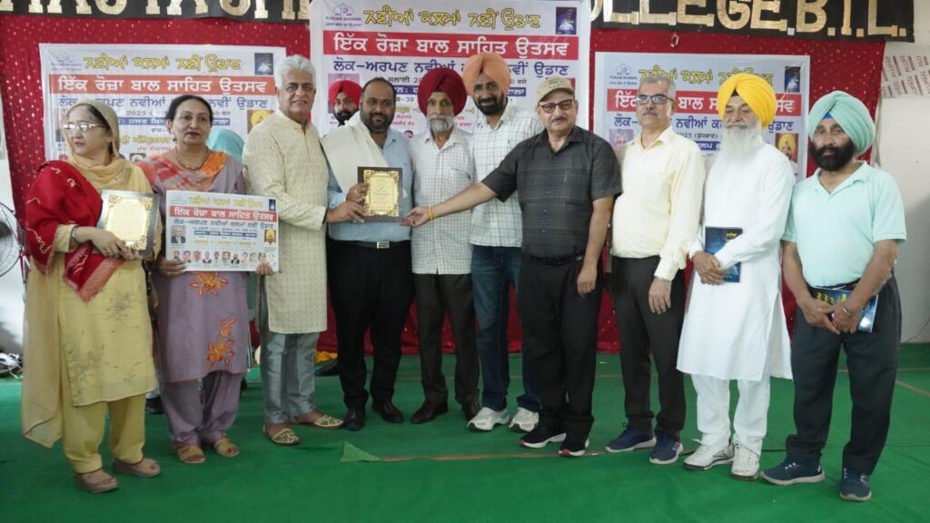 ਬਟਾਲਾ, ਗੁਰਦਾਸਪੁਰ, 10 ਜੁਲਾਈ (ਸਰਬਜੀਤ ਸਿੰਘ)— ਨਵੀਆਂ ਕਲਮਾਂ ਨਵੀਂ ਉਡਾਣ ਪ੍ਰੋਜੈਕਟ ਤਹਿਤ ਸਥਾਨਕ ਹਸਤ ਸ਼ਿਲਪ ਕਾਲਜ ਵਿਖੇ ਇੱਕ ਰੋਜ਼ਾ ਬਾਲ ਸਾਹਿਤ ਉਤਸਵ ਕਰਵਾਇਆ ਗਿਆ , ਜਿਸ ਵਿੱਚ ਨਵੀਆਂ ਕਲਮਾਂ ਨਵੀਂ ਉਡਾਣ ਦੇ ਸਰਪ੍ਰਸਤ ਸ਼੍ਰੀ ਸੁੱਖੀ ਬਾਠ ਪੰਜਾਬ ਭਵਨ ਸਰੀ ਕਨੇਡਾ ਵੱਲੋਂ ਮੁੱਖ ਮਹਿਮਾਨ ਅਤੇ ਪ੍ਰੋਜੈਕਟ ਇੰਚਾਰਜ ਉਂਕਾਰ ਸਿੰਘ ਤੇਜੇ, ਅੰਮ੍ਰਿਤ ਕਲਸੀ , ਉੱਪ ਜ਼ਿਲ੍ਹਾ ਸਿੱਖਿਆ ਅਫ਼ਸਰ ਡਾ. ਅਨਿਲ ਸ਼ਰਮਾਂ ਤੇ ਹਸਤ ਸ਼ਿਲਪ ਕਾਲਜ ਦੇ ਡਾਇਰੈਕਟਰ ਸ਼੍ਰੀ ਅਰੁਣ ਜੇਈ ਵੱਲੋਂ ਵਿਸ਼ੇਸ਼ ਮਹਿਮਾਨ ਦੇ ਤੌਰ ਤੇ ਸ਼ਿਰਕਤ ਕੀਤੀ।