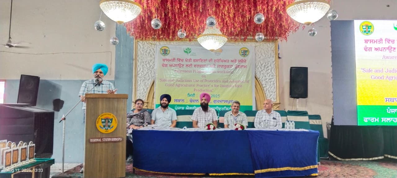 ਇਸ ਮੌਕੇ ਡਾ. ਮੱਖਣ ਸਿੰਘ ਭੁੱਲਰ ਨੇ ਦੱਸਿਆ ਕਿ ਬਾਸਮਤੀ ਦੀ ਉੱਚ ਗੁਣਵੱਤਾ ਲਈ ਖਾਦਾਂ ਅਤੇ ਕੀਟਨਾਸ਼ਕਾਂ ਦੀ ਸੁਚੱਜੀ ਵਰਤੋਂ ਕਰਨ ਦਾ ਸਲਾਹ ਦਿੱਤੀ ਅਤੇ ਪੰਜਾਬ ਐਗਰੀਕਲਚਰ ਯੂਨੀਵਰਸਿਟੀ ਵੱਲੋਂ ਕੀਤੀਆਂ ਗਈਆਂ ਸਿਫ਼ਾਰਸ਼ਾਂ ਅਨੁਸਾਰ ਵਰਤੋ ਕਰਨ ਲਈ ਕਿਹਾ। ਇਸ ਮੌਕੇ ਖੇਤੀ ਵਿਗਿਆਨੀਆਂ ਡਾ. ਰਾਜਵਿੰਦਰ ਕੌਰ, ਕੀਟ ਵਿਗਿਆਨ, ਕ੍ਰਿਸ਼ੀ ਵਿਗਿਆਨ ਕੇਂਦਰ, ਗੁਰਦਾਸਪੁਰ ਨੇ ਬਾਸਮਤੀ ਦੀ ਫ਼ਸਲ ਵਿਚ ਵਰਤੀਆਂ ਜਾਣ ਵਾਲੀਆਂ ਦਵਾਈਆਂ ਅਤੇ ਉਨ੍ਹਾਂ ਦੀ ਮਿਕਦਾਰ ਸਬੰਧੀ ਅਤੇ ਵਰਤੋ ਦੇ ਢੰਗਾਂ ਸਬੰਧੀ ਜਾਣਕਾਰੀ ਦਿੱਤੀ। ਸ.ਰਾਜਿੰਦਰ ਸਿੰਘ ਬੱਲ (ਜ਼ਿਲ੍ਹਾ ਪਸਾਰ ਵਿਗਿਆਨੀ, ਪੌਦ ਸੁਰੱਖਿਆ,ਨੇ ਬਾਸਮਤੀ ਦੀਆਂ ਬਿਮਾਰੀਆਂ ਬਾਰੇ ਜਾਣਕਾਰੀ ਸਾਂਝੀ ਕੀਤੀ। ਡਾ.ਸਤਵਿੰਦਰ ਜੀਤ ਕੌਰ, ਭੂਮੀ ਵਿਗਿਆਨੀ ਵੱਲੋਂ ਖਾਦਾਂ ਦੀ ਉਚਿੱਤ ਵਰਤੋਂ ਲਈ ਜ਼ਰੂਰੀ ਨੁਕਤੇ ਸਾਂਝੇ ਕੀਤੇ।