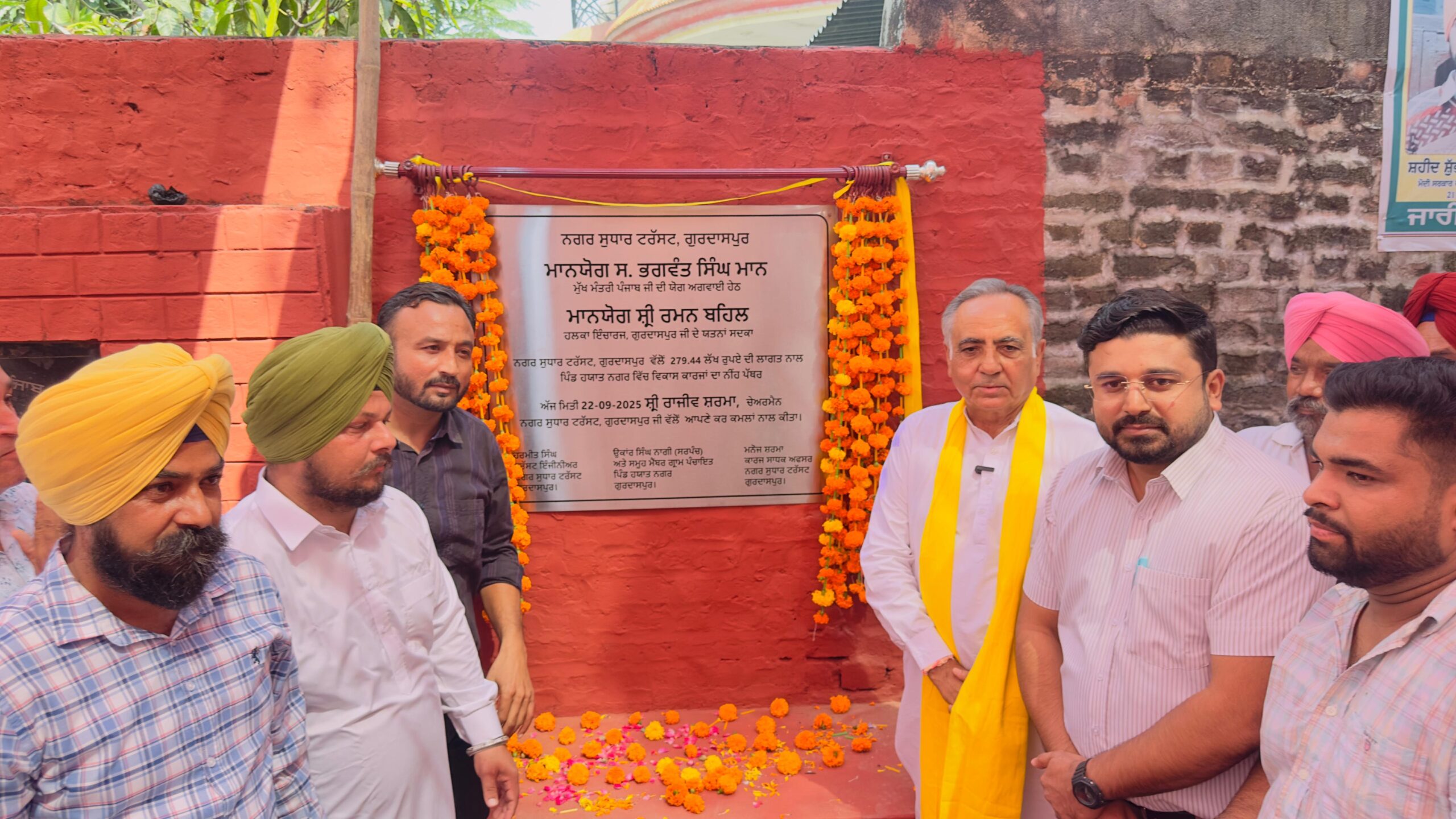 ਗੁਰਦਾਸਪੁਰ, 22 ਸਤੰਬਰ (ਸਰਬਜੀਤ ਸਿੰਘ ) – ਰਮਨ ਬਹਿਲ ਅਤੇ ਨਗਰ ਸੁਧਾਰ ਟਰੱਸਟ ਗੁਰਦਾਸਪੁਰ ਦੇ ਚੇਅਰਮੈਨ ਸ੍ਰੀ ਰਾਜੀਵ ਸ਼ਰਮਾ ਵੱਲੋਂ ਅੱਜ ਵਿਧਾਨ ਸਭਾ ਹਲਕਾ ਗੁਰਦਾਸਪੁਰ ਦੇ ਪਿੰਡ ਹਯਾਤ ਨਗਰ ਵਿਖੇ ਵੱਖ-ਵੱਖ ਵਿਕਾਸ ਪ੍ਰੋਜੈਕਟਾਂ ਦਾ ਨੀਂਹ ਪੱਥਰ ਰੱਖਿਆ। ਇਨ੍ਹਾਂ ਵਿਕਾਸ ਪ੍ਰੋਜੈਕਟਾਂ ਉੱਪਰ 2.81 ਕਰੋੜ ਰੁਪਏ ਖ਼ਰਚੇ ਜਾਣਗੇ।