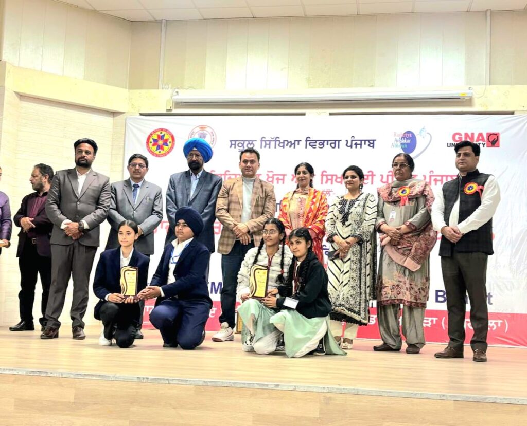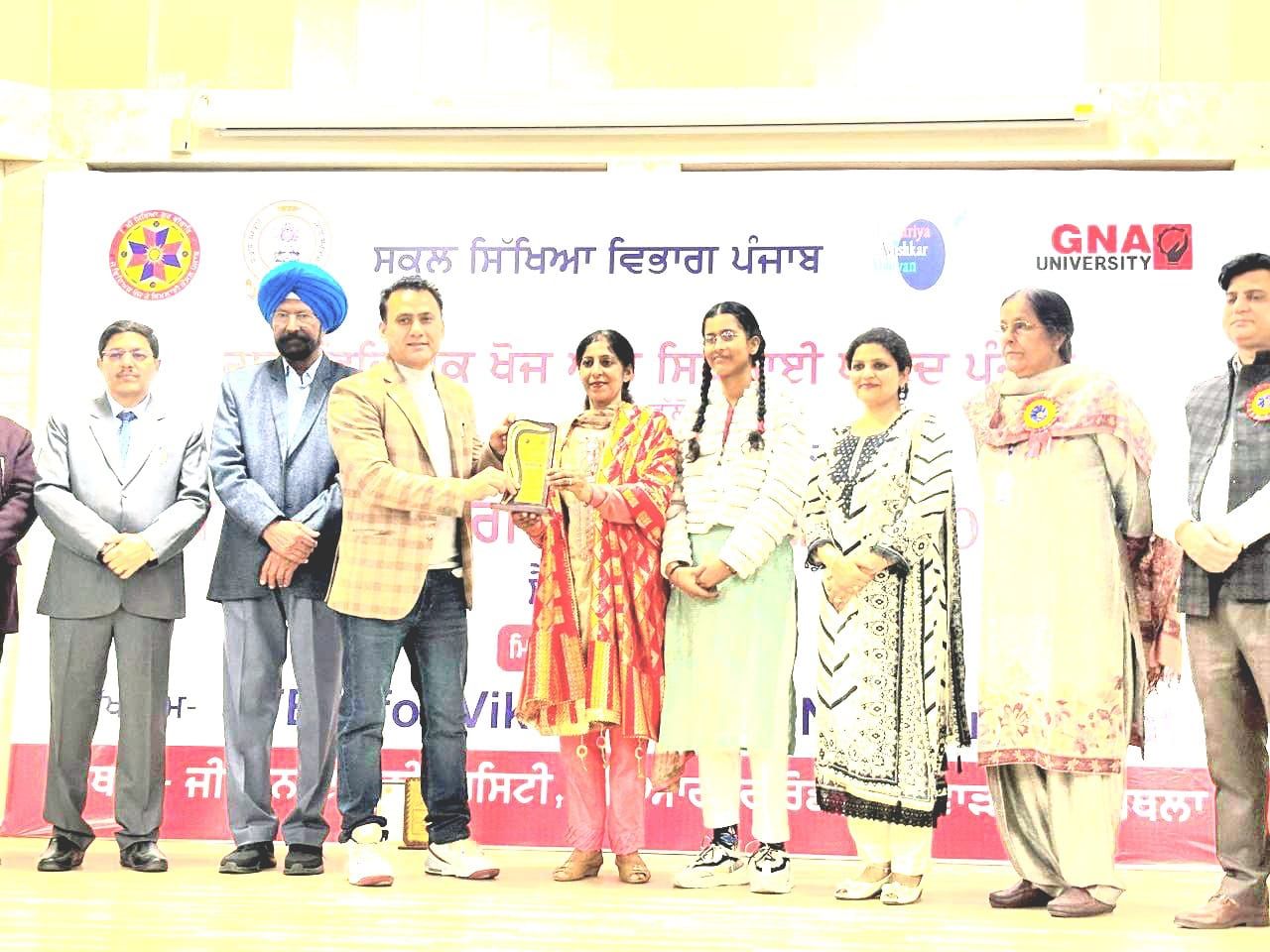 ਗੁਰਦਾਸਪੁਰ 20 ਫਰਵਰੀ (ਸਰਬਜੀਤ ਸਿੰਘ)– ਰਾਸ਼ਟਰੀ ਅਵਿਸ਼ਕਾਰ ਅਭਿਆਨ ਤਹਿਤ ਰਾਜ ਪੱਧਰੀ ਸਾਇੰਸ ਪ੍ਰਦਰਸ਼ਨੀ ਮੁਕਾਬਲਾਂ ਜੀ. ਐਨ. ਏ. ਯੂਨੀਵਰਸਿਟੀ ਫ਼ਗਵਾੜਾ ਵਿਖੇ ਆਯੋਜਿਤ ਕੀਤਾ ਗਿਆ। ਇਸ ਪ੍ਰਦਰਸ਼ਨੀ ਵਿੱਚ ਸਿਹਤ ਅਤੇ ਸਵੱਛਤਾ ਥੀਮ ਵਿੱਚ ਪਹਿਲੀ ਪੁਜੀਸ਼ਨ ਸਰਕਾਰੀ ਹਾਈ ਸਕੂਲ ਸਾਧੂ ਚੱਕ ਨੇ ਹਾਸਿਲ ਕੀਤੀ। ਵਿਦਿਆਰਥੀ ਖੁਸ਼ੀ ਨੂੰ ਸਟੇਟ ਪੱਧਰ ਤੇ ਮੁਕਾਬਲੇ ਲਈ ਤਿਆਰ ਕਰਨ ਵਿੱਚ ਗਾਈਡ ਅਧਿਆਪਕਾ ਬਾਲਾ ਰੇਨੂੰ ਹੈਡਮਾਸਟਰ ਸ਼੍ਰੀ ਦਵਿੰਦਰ ਕੁਮਾਰ ਬੀਆਰਸੀ ਗੁਰਵਿੰਦਰ ਸਿੰਘ ਸਿੰਘ ਅਤੇ ਅਰੁਣ ਸਿੰਘ ਦਾ ਵਿਸ਼ੇਸ਼ ਯੋਗਦਾਨ ਰਿਹਾ।