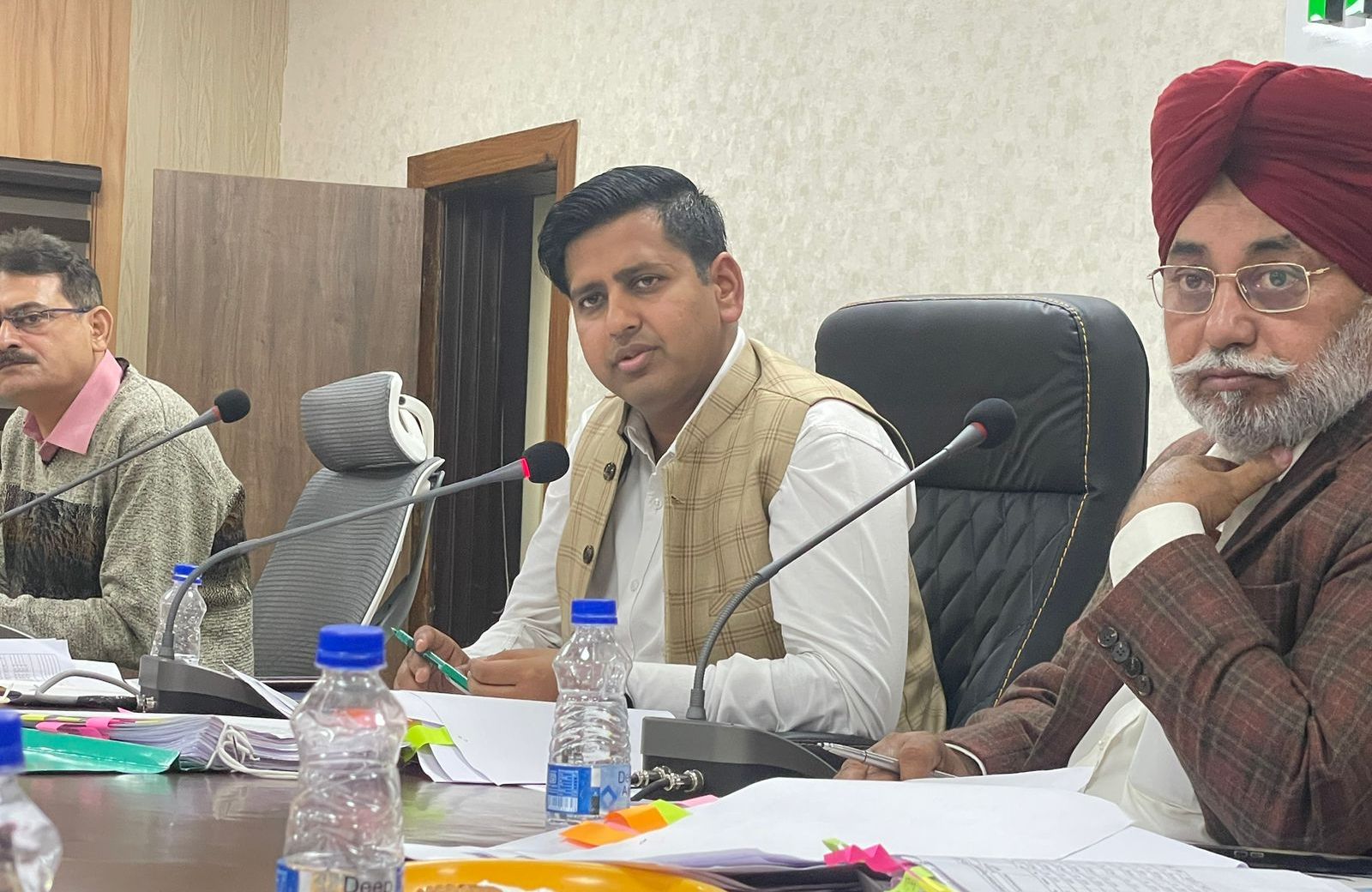 ਮੀਟਿੰਗ ਦੌਰਾਨ ਡਿਪਟੀ ਕਮਿਸ਼ਨਰ ਡਾ. ਹਿਮਾਂਸ਼ੂ ਅਗਰਵਾਲ ਨੇ ਪਿੰਡਾਂ ਵਿੱਚ ਬਣਾਏ ਜਾ ਰਹੇ ਖੇਡ ਮੈਦਾਨਾਂ, ਸਾਂਝੇ ਜਲ ਤਲਾਬਾਂ, ਪਾਰਕਾਂ, ਪਿੰਡਾਂ ਦੇ ਹੋਰ ਵਿਕਾਸ ਕਾਰਜਾਂ ਅਤੇ ਮਨਰੇਗਾ ਤਹਿਤ ਚੱਲ ਰਹੇ ਕੰਮਾਂ ਦੀ ਸਮੀਖਿਆ ਵੀ ਕੀਤੀ। ਉਨ੍ਹਾਂ ਕਿਹਾ ਕਿ ਜਿਹੜੇ ਪਿੰਡਾਂ ਵਿੱਚ ਪਾਰਕਾਂ ਬਣਾਈਆਂ ਗਈਆਂ ਹਨ ਉਨ੍ਹਾਂ ਵਿੱਚ ਫੁੱਲ-ਬੂਟੇ ਲਗਾਏ ਜਾਣ, ਉਨ੍ਹਾਂ ਦੀ ਪੂਰੀ ਦੇਖ-ਰੇਖ ਕੀਤੀ ਜਾਵੇ ਅਤੇ ਸਾਫ਼-ਸਫ਼ਾਈ ਦਾ ਖਾਸ ਖਿਆਲ ਰੱਖਿਆ ਜਾਵੇ ਤਾਂ ਜੋ ਇਹ ਪਾਰਕਾਂ ਪਿੰਡਾਂ ਦੇ ਵਸਨੀਕਾਂ ਲਈ ਸੈਰ ਕਰਨ ਦਾ ਮਨਪਸੰਦ ਸਥਾਨ ਬਣ ਸਕਣ। ਉਨ੍ਹਾਂ ਕਿਹਾ ਕਿ ਜ਼ਿਲ੍ਹੇ ਵਿੱਚ ਥਾਪਰ ਮਾਡਲ ਤਹਿਤ ਬਣਾਏ ਗਏ ਛੱਪੜ ਪੂਰੀ ਤਰਾਂ ਕੰਮ ਕਰਦੇ ਹੋਣੇ ਚਾਹੀਦੇ ਹਨ। ਇਸਦੇ ਨਾਲ ਹੀ ਉਨ੍ਹਾਂ ਨੇ ਪਿੰਡਾਂ ਦੇ ਛੱਪੜਾਂ ਅਤੇ ਸਾਂਝੇ ਜਲ ਤਲਾਬਾਂ ਵਿੱਚ ਮੱਛੀ ਪਾਲਣ ਵਿਭਾਗ ਦੇ ਸਹਿਯੋਗ ਨਾਲ ਮੱਛੀ ਪਾਲਣ ਦਾ ਕਿੱਤਾ ਸ਼ੁਰੂ ਕਰਨ ਲਈ ਵੀ ਕਿਹਾ।