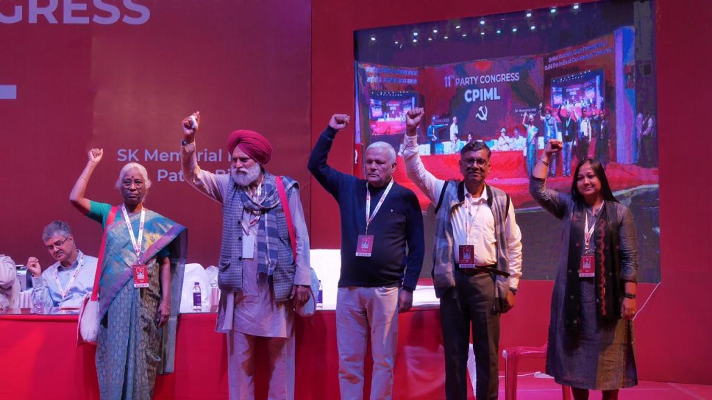 ਪਟਨਾ/ਗੁਰਦਾਸਪੁਰ, 22 ਫਰਵਰੀ (ਸਰਬਜੀਤ ਸਿੰਘ)– ਸੀਪੀਆਈ (ਐਮਐਲ) ਦਾ 11ਵਾਂ ਮਹਾਂ ਸੰਮੇਲਨ ਬੀਤੀ ਰਾਤ ਦੇਰ ਨਾਲ ਪਾਰਟੀ ਦੀ ਕੇਂਦਰੀ ਕਮੇਟੀ ਅਤੇ ਕੇਂਦਰੀ ਕੰਟਰੋਲ ਕਮਿਸ਼ਨ ਦੀ ਚੋਣ ਕਰਨ ਤੋਂ ਬਾਦ ਇਨਕਲਾਬੀ ਨਾਹਰਿਆਂ ਦੀ ਗੂੰਜ ਵਿਚ ਸਫਲਤਾ ਪੂਰਬਕ ਸੰਪਨ ਹੋ ਗਿਆ। ਡੈਲੀਗੇਟਾਂ ਨੇ ਗੁਪਤ ਵੋਟਿੰਗ ਰਾਹੀਂ 76 ਮੈਂਬਰੀ ਕੇਂਦਰੀ ਕਮੇਟੀ ਅਤੇ ਪੰਜ ਮੈਂਬਰੀ ਕੇਂਦਰੀ ਕੰਟਰੋਲ ਕਮਿਸ਼ਨ ਦੀ ਚੋਣ ਕੀਤੀ। ਮਹਾਂ ਸੰਮੇਲਨ ਵਿਚ ਦੇਸ਼ ਦੇ 20 ਸੂਬਿਆਂ ਤੇ ਕੇਂਦਰ ਸ਼ਾਸਤ ਪ੍ਰਦੇਸ਼ਾਂ ਤੋਂ 1639 ਡੈਲੀਗੇਟ ਅਤੇ 160 ਦਰਸ਼ਕ ਹਾਜ਼ਰ ਸਨ। ਬੇਸ਼ਕ ਪਿਛਲੀ ਕੇਂਦਰੀ ਕਮੇਟੀ ਵਲੋਂ ਪੇਸ਼ ਪੈਨਲ ਤੋਂ ਇਲਾਵਾ ਵੀ 6 ਉਮੀਦਵਾਰ ਮੈਦਾਨ ਵਿਚ ਸਨ, ਪਰ ਕਰੀਬ 85 ਪ੍ਰਤੀਸ਼ਤ ਡੈਲੀਗੇਟਾਂ ਨੇ ਪੈਨਲ ਵਿਚਲੇ ਉਮੀਦਵਾਰਾਂ ਨੂੰ ਹੀ ਵੋਟ ਦਿੱਤਾ। ਨਵੀਂ ਚੁਣੀ ਕੇਂਦਰੀ ਕਮੇਟੀ ਨੇ ਕਾਮਰੇਡ ਦੀਪਾਂਕਰ ਭੱਟਾਚਾਰੀਆ ਨੂੰ ਮੁੜ ਪਾਰਟੀ ਦਾ ਜਨਰਲ ਸਕੱਤਰ ਚੁਣਿਆ ।
