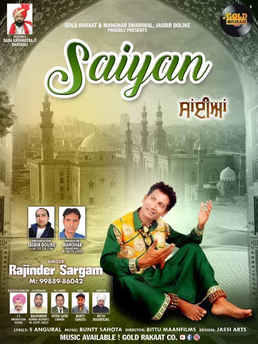 ਜਲੰਧਰ, ਗੁਰਦਾਸਪੁਰ, 10 ਮਈ (ਸਰਬਜੀਤ ਸਿੰਘ)–ਗਾਇਕ ਰਾਜਿੰਦਰ ਸਰਗਮ ਨਵੇਂ ਸੂਫ਼ੀ ਟਰੈਕ “ਸਾਈਆਂ” ਨਾਲ ਅੱਜ ਰਾਤ ਡੀ.ਡੀ ਪੰਜਾਬੀ ਤੇ ਰੰਗਾਰੰਗ ਪ੍ਰੋਗਰਾਮ ਰੌਣਕਾਂ ਦੀ ਰਾਤ ਵਿੱਚ ਦਰਸ਼ਕਾਂ ਦੇ ਰੂਬਰੂ ਹੋ ਰਹੇ ਹਨ।