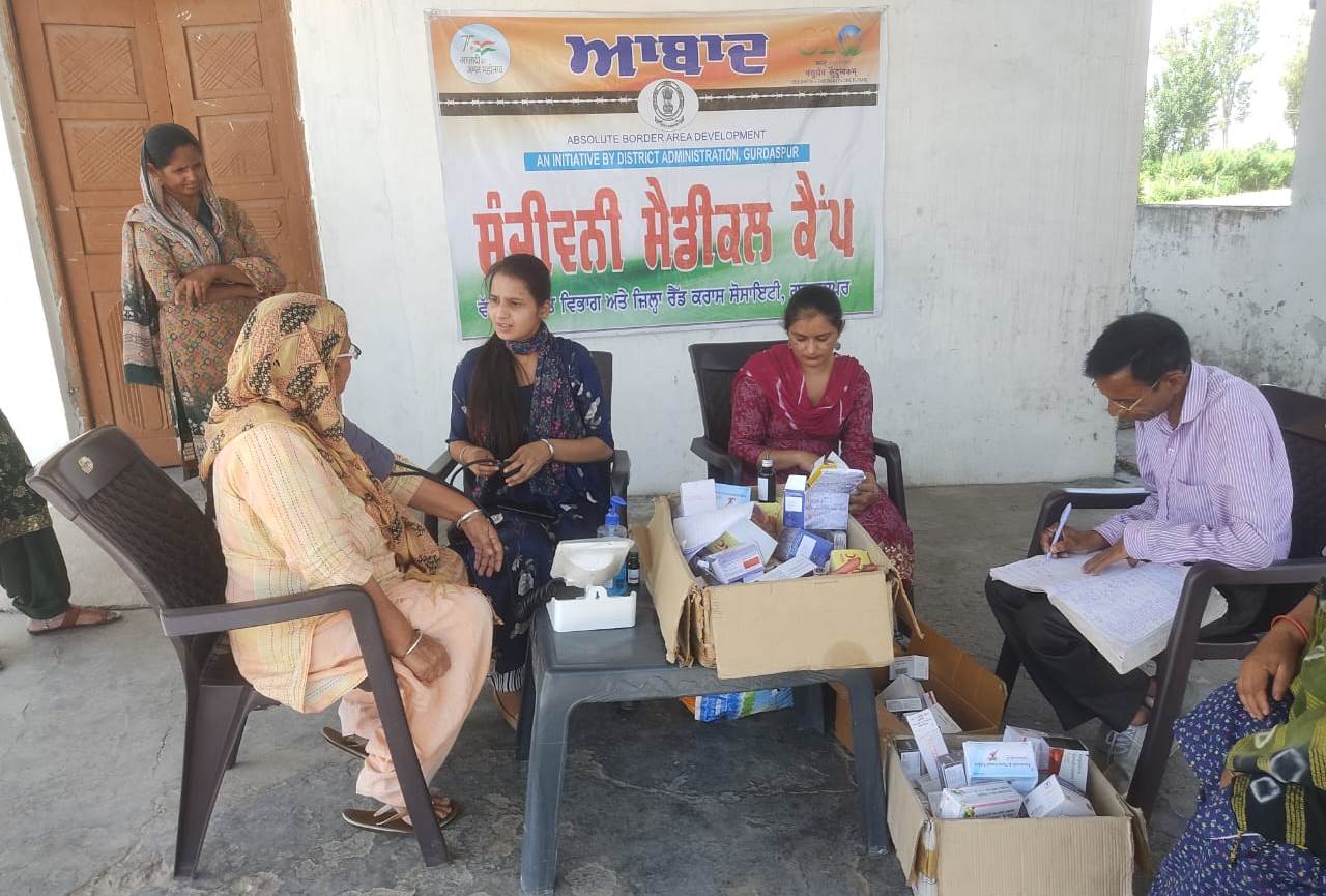 ਗੁਰਦਾਸਪੁਰ, 12 ਮਈ (ਸਰਬਜੀਤ ਸਿੰਘ) – ਡਿਪਟੀ ਕਮਿਸ਼ਨਰ ਡਾ. ਹਿਮਾਂਸ਼ੂ ਅਗਰਵਾਲ ਦੇ ਦਿਸ਼ਾ ਨਿਰਦੇਸ਼ਾਂ ਤਹਿਤ ਸਰਹੱਦੀ ਖੇਤਰ ਦੇ ਲੋਕਾਂ ਦੀ ਸਹੂਲਤ ਅਤੇ ਸਰਬਪੱਖੀ ਵਿਕਾਸ ਲਈ ਚਲਾਏ ਜਾ ਰਹੇ ‘ਮਿਸ਼ਨ ਅਬਾਦ’ ਤਹਿਤ ਜ਼ਿਲਾ ਰੈੱਡ ਕਰਾਸ ਸੁਸਾਇਟੀ ਗੁਰਦਾਸਪੁਰ ਵੱਲੋਂ ਸਰਹੱਦੀ ਪਿੰਡਾਂ ਵਿੱਚ ‘ਅਬਾਦ ਸੰਜੀਵਨੀ ਮੈਡੀਕਲ ਕੈਂਪ’ ਲਗਾ ਕੇ ਲੋਕਾਂ ਨੂੰ ਮੁਫ਼ਤ ਮੈਡੀਕਲ ਸੇਵਾਵਾਂ ਦੇਣ ਦਾ ਸਿਲਸਲਾ ਲਗਾਤਾਰ ਜਾਰੀ ਹੈ।