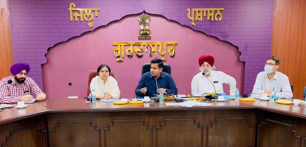 ਗੁਰਦਾਸਪੁਰ, 3 ਜੂਨ (ਸਰਬਜੀਤ ਸਿੰਘ)– ਡਿਪਟੀ ਕਮਿਸ਼ਨਰ ਡਾ. ਹਿਮਾਂਸ਼ੂ ਅਗਰਵਾਲ ਨੇ ਪੰਚਾਇਤ ਵਿਭਾਗ ਦੇ ਅਧਿਕਾਰੀਆਂ ਨੂੰ ਹਦਾਇਤ ਕੀਤੀ ਹੈ ਕਿ ਜ਼ਿਲ੍ਹੇ ਦੇ ਉਲੰਪੀਅਨ ਖਿਡਾਰੀਆਂ ਦੇ ਪਿੰਡਾਂ ਵਿੱਚ ਉਨ੍ਹਾਂ ਨੂੰ ਸਮਰਪਿਤ ਬਣਾਏ ਜਾ ਰਹੇ ਖੇਡ ਮੈਦਾਨਾਂ ਨੂੰ ਅਗਲੇ ਮਹੀਨੇ 31 ਜੁਲਾਈ ਤੱਕ ਮੁਕੰਮਲ ਕੀਤਾ ਜਾਵੇ। ਅੱਜ ਸਥਾਨਕ ਪੰਚਾਇਤ ਭਵਨ ਵਿਖੇ ਪੰਚਾਇਤ ਵਿਭਾਗ, ਖੇਡ ਵਿਭਾਗ ਅਤੇ ਹੋਰ ਸਬੰਧਤ ਵਿਭਾਗਾਂ ਦੇ ਅਧਿਕਾਰੀਆਂ ਨਾਲ ਮੀਟਿੰਗ ਕਰਦਿਆਂ ਡਿਪਟੀ ਕਮਿਸ਼ਨਰ ਡਾ. ਹਿਮਾਂਸ਼ੂ ਅਗਰਵਾਲ ਨੇ ਕਿਹਾ ਕਿ ਇਨ੍ਹਾਂ ਖੇਡਾਂ ਮੈਦਾਨ ਨੂੰ ਪਹਿਲ ਦੇ ਅਧਾਰ `ਤੇ ਮੁਕੰਮਲ ਕੀਤਾ ਜਾਵੇ ਤਾਂ ਜੋ ਨੌਜਵਾਨ ਪੀੜ੍ਹੀ ਨੂੰ ਖੇਡਾਂ ਨਾਲ ਜੋੜਿਆ ਜਾ ਸਕੇ।
