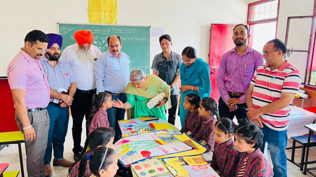 ਗੁਰਦਾਸਪੁਰ, 11 ਜੁਲਾਈ (ਸਰਬਜੀਤ ਸਿੰਘ)– ਸਿੱਖਿਆ ਮੰਤਰੀ ਪੰਜਾਬ ਸ. ਹਰਜੋਤ ਸਿੰਘ ਬੈਂਸ ਦੀ ਅਗਵਾਈ ਵਿੱਚ ਸਾਰੇ ਪੰਜਾਬ ਸਰ ਸਰਕਾਰੀ ਸਕੂਲਾਂ ਵਿੱਚ ਪ੍ਰੀ-ਪ੍ਰਾਇਮਰੀ ਤੋਂ ਅੱਠਵੀਂ ਤੱਕ ਸਮਰ ਕੈਂਪ ਲਗਾਏ ਜਾ ਰਹੇ ਹਨ। ਜਿਸ ਵਿੱਚ ਸਿੱਖਿਆ ਵਿਭਾਗ ਵੱਲੋਂ ਭੇਜੀਆਂ ਜਮਾਤਵਾਰ ਗਤੀਵਿਧੀਆਂ ਵਿਦਿਆਰਥੀਆਂ ਨੂੰ ਕਰਵਾਈਆਂ ਜਾਂਦੀਆਂ ਹਨ। ਇਸ ਦੌਰਾਨ ਅੱਜ ਜ਼ਿਲ੍ਹਾ ਸਿੱਖਿਆ ਅਫ਼ਸਰ ਐਲੀ: ਮਮਤਾ ਖੁਰਾਣਾ ਸੇਠੀ ,ਉੱਪ ਜ਼ਿਲ੍ਹਾ ਸਿੱਖਿਆ ਅਫ਼ਸਰ ਐਲੀ ਪ੍ਰਕਾਸ਼ ਜੋਸ਼ੀ ਵੱਲੋਂ ਵੱਖ-ਵੱਖ ਸਕੂਲ ਵਿਜਟ ਕਰਕੇ ਵਿਦਿਆਰਥੀਆਂ ਨੂੰ ਕਰਵਾਈਆਂ ਜਾ ਰਹੀਆਂ ਗਤੀਵਿਧੀਆਂ ਦਾ ਜਾਇਜ਼ਾ ਲਿਆ।