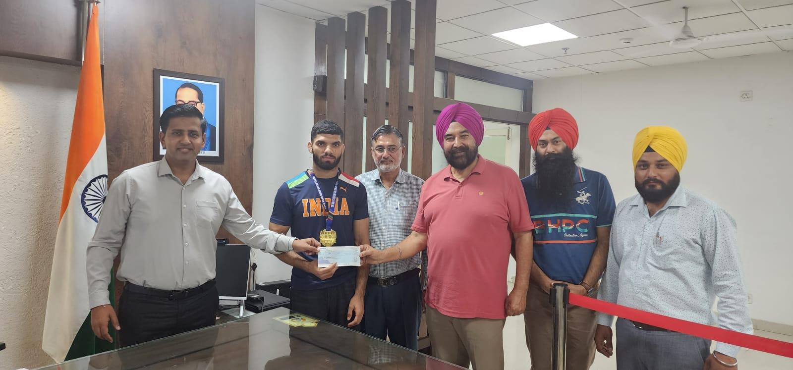 ਗੁਰਦਾਸਪੁਰ, 14 ਜੁਲਾਈ (ਸਰਬਜੀਤ ਸਿੰਘ)–ਗੁਰਦਾਸਪੁਰ ਸ਼ਹਿਰ ਦੇ ਵਸਨੀਕ ਅਤੇ ਇੰਟਰਨੈਸਨਲ ਜੂਡੋੋ ਖਿਡਾਰੀ ਜਸਲੀਨ ਸਿੰਘ ਸੈਣੀ ਨੂੰ ਏਸੀਅਨ ਜੂਡੋੋ ਓਪਨ ਚੈਪੀਅਨਸ਼ਿਪ ਵਿੱਚ ਗੋੋਲਡ ਮੈਡਲ ਹਾਸਲ ਕਰਨ ’ਤੇ ਡਿਪਟੀ ਕਮਿਸ਼ਨਰ ਡਾ. ਹਿਮਾਂਸ਼ੂ ਅਗਰਵਾਲ ਨੇ ਵਧਾਈ ਦਿੱਤੀ ਹੈ। ਆਪਣੇ ਦਫ਼ਤਰ ਵਿੱਚ ਜੁਡੋ ਖਿਡਾਰੀ ਜਸਲੀਨ ਸਿੰਘ ਸੈਣੀ ਨਾਲ ਮੁਲਾਕਾਤ ਕਰਨ ਮੌਕੇ ਡਿਪਟੀ ਕਮਿਸ਼ਨਰ ਡਾ. ਹਿਮਾਂਸ਼ੂ ਅਗਰਵਾਲ ਨੇ ਕਿਹਾ ਕਿ ਪੂਰੇ ਜ਼ਿਲ੍ਹੇ ਅਤੇ ਸੂਬੇ ਨੂੰ ਉਸ ਉੱਪਰ ਮਾਣ ਹੈ। ਉਨ੍ਹਾਂ ਕਿਹਾ ਕਿ ਜਸਲੀਨ ਸਿੰਘ ਸੈਣੀ ਨੇ ਬਹੁਤ ਵਧੀਆ ਖੇਡ ਦਾ ਮੁਜ਼ਾਹਰਾ ਕਰਦੇ ਹੋਏ ਏਸੀਅਨ ਜੂਡੋੋ ਓਪਨ ਚੈਪੀਅਨਸ਼ਿਪ ਵਿੱਚ ਗੋੋਲਡ ਮੈਡਲ ਹਾਸਲ ਕੀਤਾ ਹੈ। ਉਨ੍ਹਾਂ ਕਿਹਾ ਕਿ ਦੇਸ਼ ਨੂੰ ਉਸ ਕੋਲੋਂ ਹੋਰ ਵੀ ਵਿਸ਼ਵ ਪੱਧਰੀ ਮੁਕਾਬਲਿਆਂ ਵਿੱਚ ਏਵੇਂ ਦੇ ਪ੍ਰਦਰਸ਼ਨ ਦੀ ਹੀ ਆਸ ਹੈ ਅਤੇ ਉਹ ਹੋਰ ਵੀ ਵਿਸ਼ਵ ਪੱਧਰੀ ਮੁਕਾਬਲਿਆਂ ਵਿੱਚ ਭਾਰਤ ਲਈ ਗੋਲਡ ਮੈਡਲ ਜਿੱਤੇਗਾ। ਉਨ੍ਹਾਂ ਕਿਹਾ ਕਿ ਜਸਲੀਨ ਸਿੰਘ ਸੈਣੀ ਤੋਂ ਪ੍ਰੇਰਨਾ ਲੈ ਕੇ ਹੋਰ ਨੌਜਵਾਨ ਵੀ ਖੇਡਾਂ ਦੇ ਖੇਤਰ ਵਿੱਚ ਅੱਗੇ ਆ ਕੇ ਆਪਣੇ ਸੂਬੇ ਤੇ ਦੇਸ਼ ਦਾ ਨਾਮ ਰੌਸ਼ਨ ਕਰਨਗੇ।