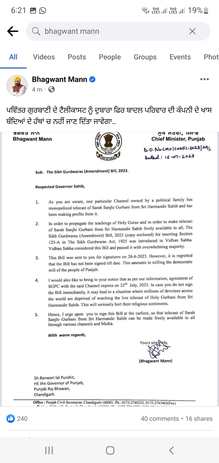 ਮੁੱਖ ਮੰਤਰੀ ਨੇ ਕੀਤਾ ਟਵੀਟ ਗੁਰਦਾਸਪੁਰ July 16, 2023July 16, 2023josh newsLeave a Comment on ਮੁੱਖ ਮੰਤਰੀ ਨੇ ਕੀਤਾ ਟਵੀਟ ਗੁਰਦਾਸਪੁਰ, 16 ਜੁਲਾਈ (ਸਰਬਜੀਤ ਸਿੰਘ)–ਪਵਿੱਤਰ ਬਾਣੀ ਸਬੰਧੀ ਪੰਜਾਬ ਦੇ ਮੁੱਖ ਮੰਤਰੀ ਭਗਵੰਤ ਮਾਨ ਨੇ ਟਵੀਟ ਕੀਤਾ ਹੈ ਕਿ ਫਿਰ ਤੋਂ ਬਾਦਲ ਪਰਿਵਾਰ ਦੀ ਕੰਪਨੀ ਦੇ ਖਾਸ ਬੰਦਿਆ ਦੇ ਹੱਥਾਂ ਨਹੀਂ ਜਾਣ ਦਿੱਤਾ ਜਾਵੇਗਾ।