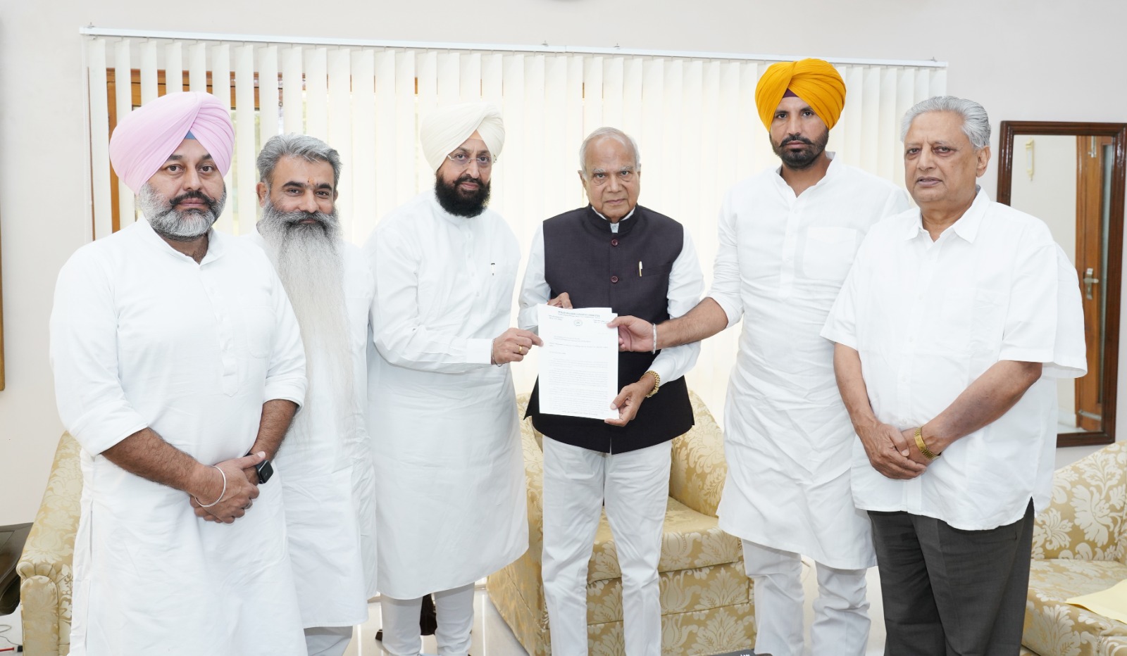ਚੰਡੀਗੜ੍ਹ, ਗੁਰਦਾਸਪੁਰ, 21 ਜੁਲਾਈ (ਸਰਬਜੀਤ ਸਿੰਘ)–ਪੰਜਾਬ ਕਾਂਗਰਸ ਦੇ ਸੀਨੀਅਰ ਆਗੂਆਂ ਦੇ ਇੱਕ ਵਫ਼ਦ ਨੇ ਅੱਜ ਪੰਜਾਬ ਦੇ ਮਾਣਯੋਗ ਰਾਜਪਾਲ ਬਨਵਾਰੀਲਾਲ ਪੁਰੋਹਿਤ ਨਾਲ ਮੁਲਾਕਾਤ ਕੀਤੀ ਅਤੇ ਉਨ੍ਹਾਂ ਨੂੰ ਦੋ ਮੰਗ ਪੱਤਰ ਸੌਂਪ ਕੇ ਹਰਿਆਣਾ ਨੂੰ ਵੱਖਰੇ ਵਿਧਾਨ ਸਭਾ ਲਈ 10 ਏਕੜ ਜ਼ਮੀਨ ਦੇਣ ਦੇ ਫੈਸਲੇ ਨੂੰ ਤੁਰੰਤ ਰੱਦ ਕਰਨ ਦੀ ਮੰਗ ਕੀਤੀ। ਪੰਜਾਬ ਵਿੱਚ ਹਾਲ ਹੀ ਵਿੱਚ ਆਏ ਹੜ੍ਹਾਂ ਕਾਰਨ ਹੋਏ ਨੁਕਸਾਨ ਦੀ ਭਰਪਾਈ ਲਈ ਭਾਰਤ ਸਰਕਾਰ ਤੋਂ ਵਾਧੂ ਫੰਡ ਜਾਰੀ ਕਰਨ ਦੀ ਵੀ ਮੰਗ ਕੀਤੀ।